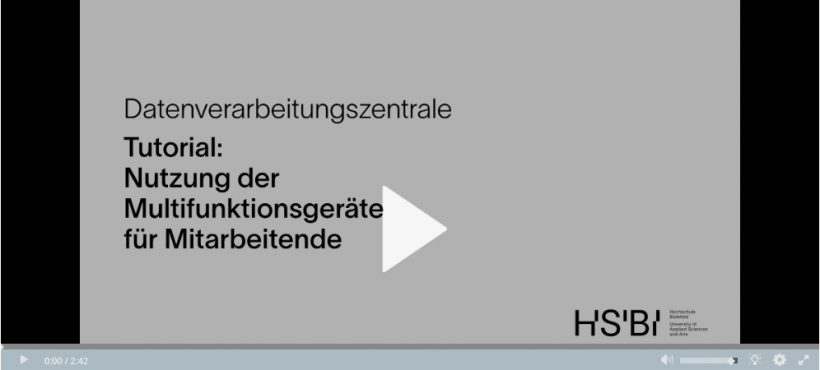 Die Multifunktionsgeräte für die Mitarbeitenden bieten Funktionalitäten, die im Folgenden beschrieben werden. In dieser Anleitung sind z.T. Videos hinterlegt (erkennbar durch eine "Play-Taste" im Bild), die sie durch einen Klick auf das Bild aufrufen können.