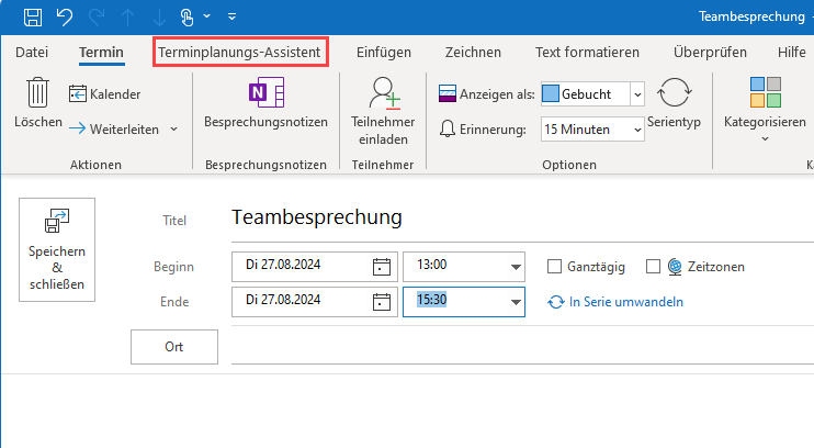 Raumressource buchen mittels Terminplanungs-Assistenten