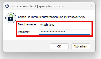 Beschäftigte: Verbindung mit VPN über Cisco Secure Client herstellen