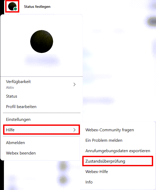 Zustandsprüfung /Zurücksetzen in Webex durchführen