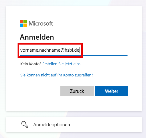Hinweis: Die Nutzung von Microsoft Office 365 setzt zwingend eine aktive 2-Faktor-Authentisierung (2FA) voraus. Ohne diesen zweiten Sicherheitsfaktor ist ein Login nicht möglich. Wie Sie Diesen einrichten können, erfahren Sie in der folgenden FAQ: www.hsbi.de/dvz/faq/cat/127