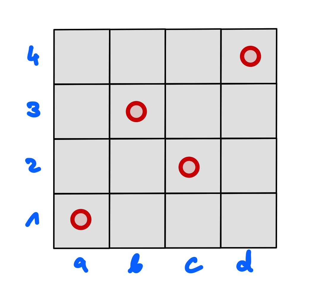Dabei korrespondiert der Index in das Array des Individuums mit der jeweiligen Spalte des Spielfelds. Die Zahl an einer Arrayposition gibt dann an, in welcher Zeile in dieser Spalte eine Königin ist.
