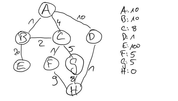 Dabei können nur die Anzahl der Zwischenstationen auf dem Weg gezählt werden ("uninformierte Suche"), oder man ordnet den Kanten Kosten zu (bei der Wegesuche wären dies die Entfernungen zwischen den Orten oder die Zeit, die man von A nach B braucht) und landet damit bei der "informierten Suche".