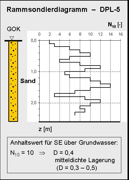enggestuften Sandes (SE) oberhalb des Grundwassers kann eine Schlagzahl