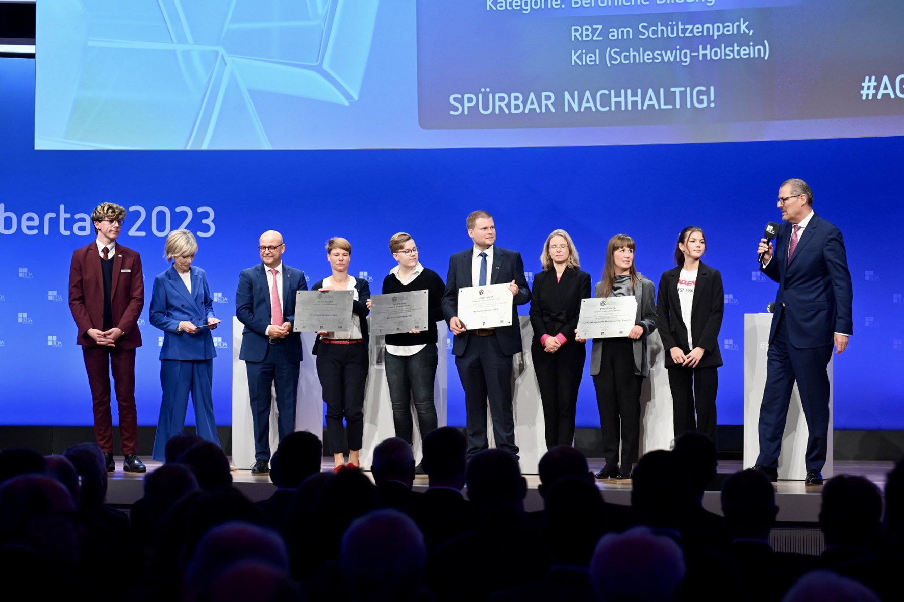 Berlin / Bielefeld (hsbi). The Confederation of German Employers’ Associations (Bundesvereinigung der Deutschen Arbeitgeberverbände, BDA) has been honouring outstanding achievements in education for more than 20 years. The prize is supported by Deutsche Telekom AG and Deutsche Bahn AG. The award categories are early childhood and school education, vocational training and higher education, which come with a prize of 10,000 euros each. Each year, the award focuses on a new theme, this time it was “Noticeably sustainable.” Educational institutions that foster sustainable learning and responsible action were eligible for the award.