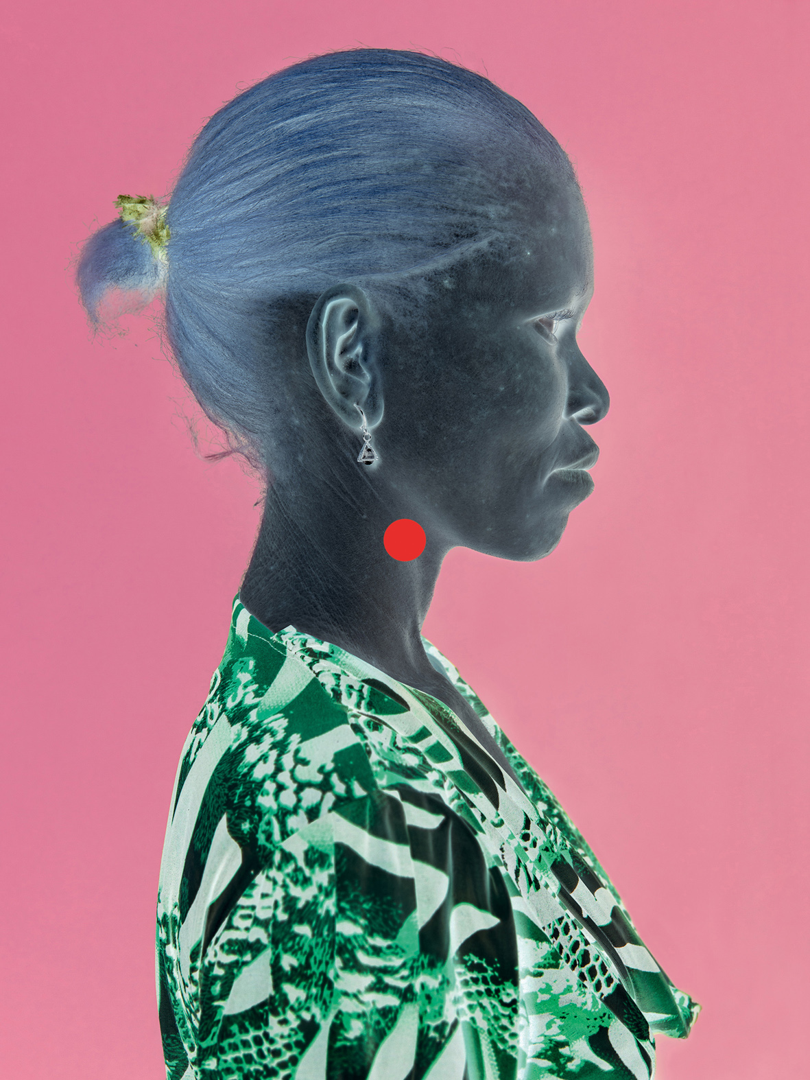 „In meiner Arbeit thematisiere ich das subjektive Sehen und das Entstehen von Bildern in unserem Kopf“, so Autio. Ihre Fotografien zeigen vermeintlich dunkelhäutige Menschen in bunter Kleidung. „Diese ordnen wir mit unserem westlichen Blick Afrika zu“, erklärt die Preisträgerin. Für den Abzug hat sie nicht das Positiv, sondern das Negativ verwendet. Dadurch entsteht eine optische Täuschung der in Wirklichkeit hellhäutigen Personen. Denn die Abgebildeten sind mit einem genetischen Defekt geboren worden, der Albinismus genannt wird. Die Symptome: aufgehellte Haut, weißblonde Haare und helle Augen. Die Aufnahmen sind in Tansania entstanden. Für einen Monat war Autio vor Ort, hat mit verschiedenen Organisationen zusammengearbeitet und als Teil ihrer Arbeit einen Kurzfilm über einen Schönheitswettbewerb für junge Frauen mit Albinismus gedreht. „Ich habe gesehen, welche Herausforderungen und Schwierigkeiten Personen mit Albinismus in Tansania haben“, berichtet sie. Betroffene gelten dort als Außenseiter der Gesellschaft. Die Bilder der HSBI-Absolventin signalisieren dem Betrachter somit, dass der Eindruck und der wahre Bildgegenstand nicht immer übereinstimmen und aus vorschnellen Schlüssen Vorurteile entstehen können.