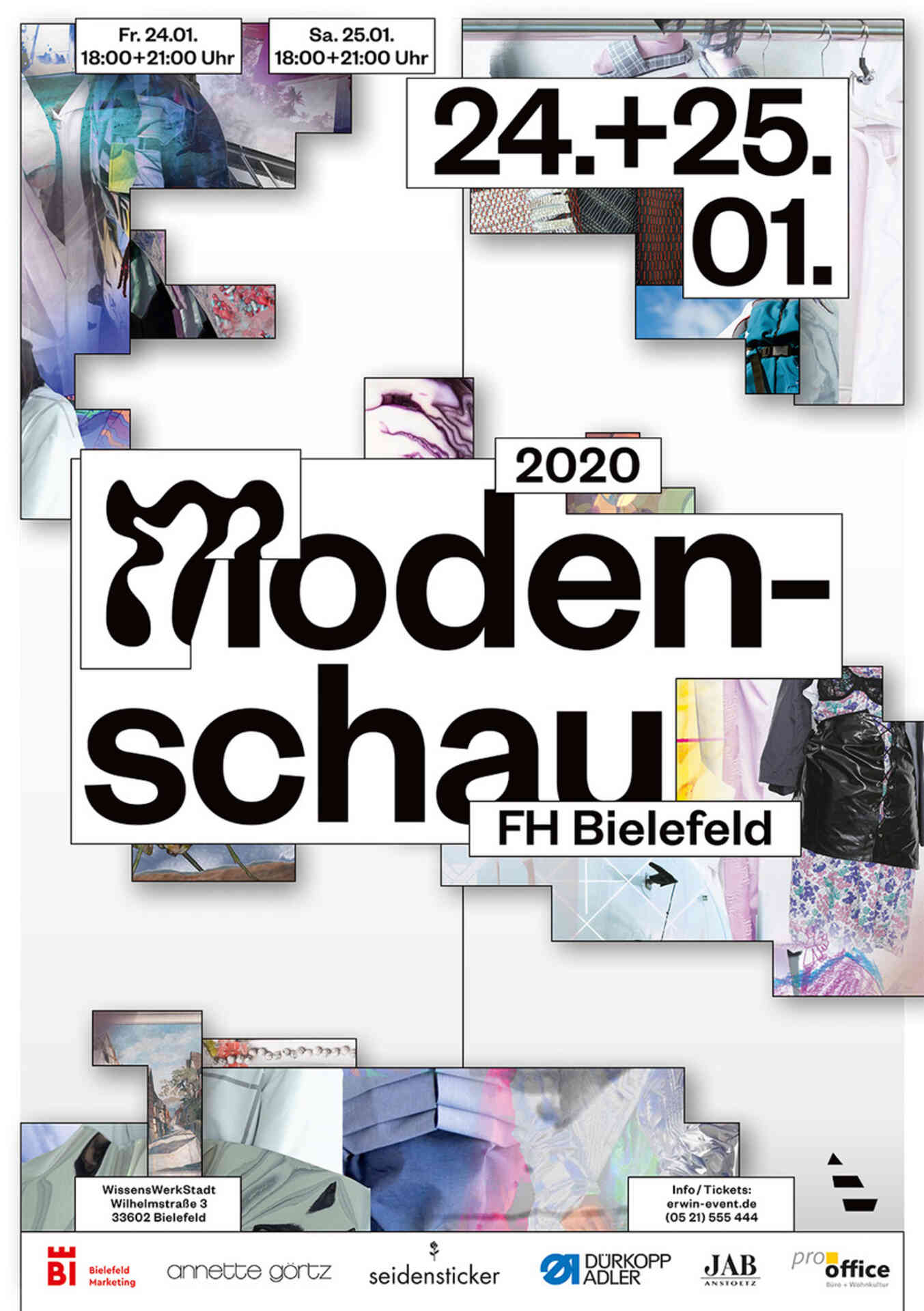 Die Modestudierenden des Fachbereichs Gestaltung der Hochschule Bielefeld präsentieren auf der Modenschau am 24. und 25. Januar 2020 Abschlussprojekte und Semesterarbeiten in der WissensWerkStadt (ehemalige Stadtbibliothek). In Kooperation mit der neuen Studienrichtung Digital Media and Experiment des Fachbereichs Gestaltung entsteht eine medienübergreifende, interdisziplinäre Präsentation von Mode.