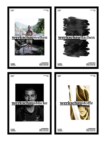 Die Publikation zur Werkschau ist dieses Mal kein Buch und auch kein Katalog. Nein, das alte Medium Zeitung wurde wiederentdeckt von Ann Christin Hollmann, Leonhard Koczorowski und Mona Vogel. Sie zeichnen verantwortlich für 48 Seiten "werkschauzeitung", wobei im Titel die "werkschau" durchgestrichen ist und die "zeitung" allein leserlich bleibt. Ein Gestaltungsprinzip, das die drei auch auf insgesamt 33 kleinen Plakaten fortsetzen. Mit den "werkschauwelten", "werkschaulust" und "werkschaustoffe" wird auf die drei Studienrichtungen am Fachbereich hingewiesen: Fotografie und Medien, Grafik und Kommunikationsdesign sowie Mode. Bezjak über die "werkschau"-Zeitung: "Die Publizität ist bei dieser Ausgabe besonders groß, da sie gratis ausliegt und für jedermann zugänglich ist." Immerhin 3.000 Exemplare wurden gedruckt.