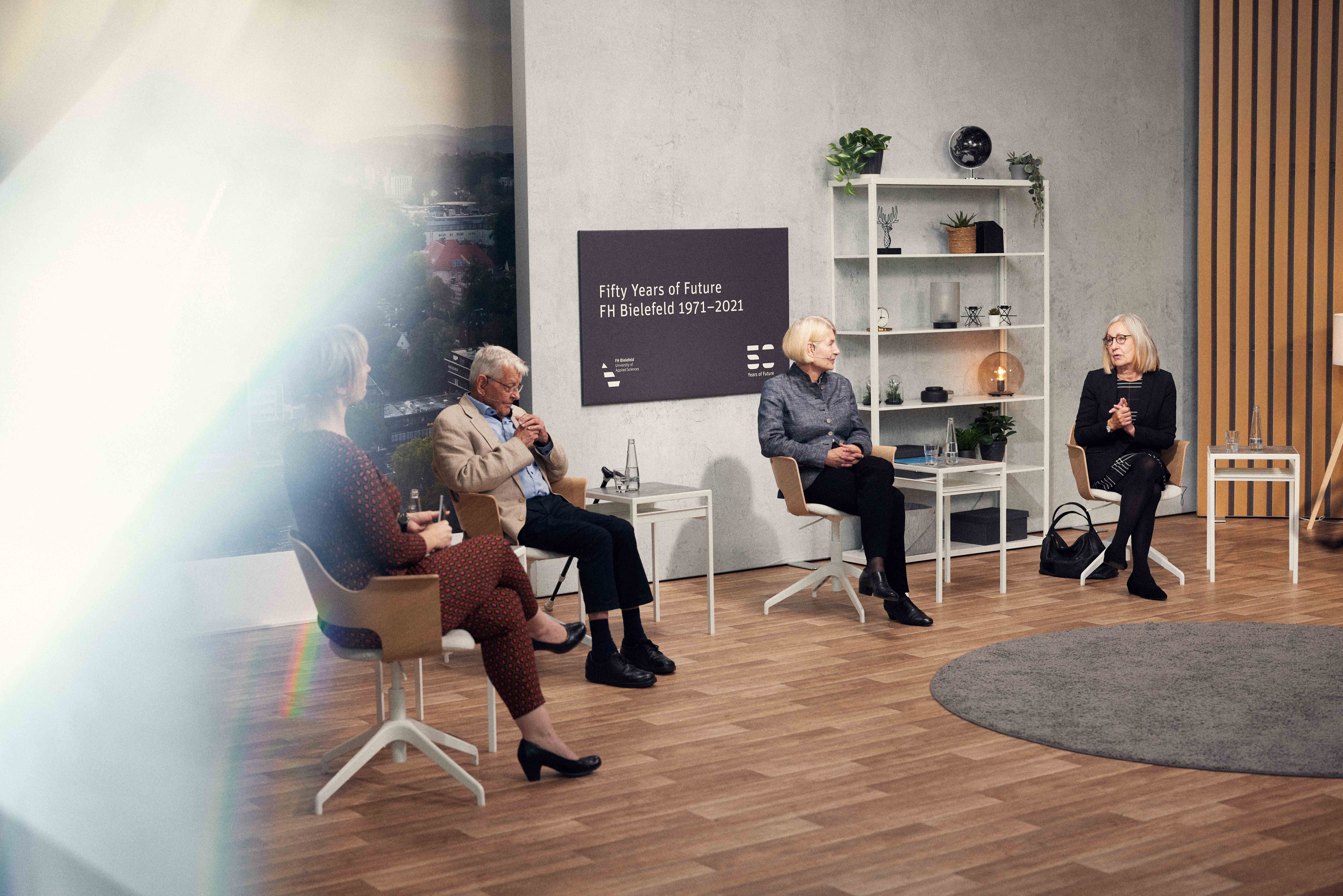 Aktuelle Fragen rund um Herausforderungen der Hochschule diskutierte die Talkrunde beim Jubiläumsempfang, an der neben FH-Präsidentin Prof. Dr. Ingeborg Schramm-Wölk auch Prof. Dr. Germanus Wegmann und Prof. Dr. Beate Rennen-Allhoff teilnahmen.