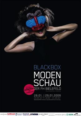 Zu einer spektakulären Show luden Studierende und Diplomanden des Fachbereichs Gestaltung in den Ringlokschuppen in Bielefeld ein. Unter dem Titel »Blackbox« präsentierten die Jungdesigner rund 170 Modelle: Den Auftakt machten Arbeiten von Studierenden aus dem ersten, dritten, fünften und siebten Semester. Eine der Kollektionen präsentierte Modelle, deren Material zur Hälfte aus Mali stammt. Mit dieser Kollektion »WELTGEWÄNDER2009« nehmen die Studierenden auch am diesjährigen Modedesignwettbewerb der Welthungerhilfe in Berlin teil. Begleitet von Live-Musik und Performances folgten die diesjährigen Diplomarbeiten der Mode-Studierenden. Zwei Kollektionen wurden im Anschluss an die Modenschau mit dem ersten Bielefelder Modepreis ausgezeichnet.