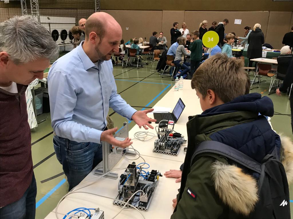 Rund 4.000 Besucherinnen und Besucher kamen an dem genannten Wochenende ins Carl-Miele-Berufskolleg für Technik in Gütersloh. Neben Workshops und einer Bühnenschau mit Live-Experimenten stellten sich an insgesamt knapp 50 Ständen Schulen, Vereine, Unternehmen und andere Einrichtungen vor. Der Fachbereich Ingenieurwissenschaften und Mathematik (IuM) der FH Bielefeld besetzte einen davon. Das Team des Campus Gütersloh sorgte dafür, dass Interessierte einen praktischen Einblick in die Studiengänge des Fachbereichs erhielten.