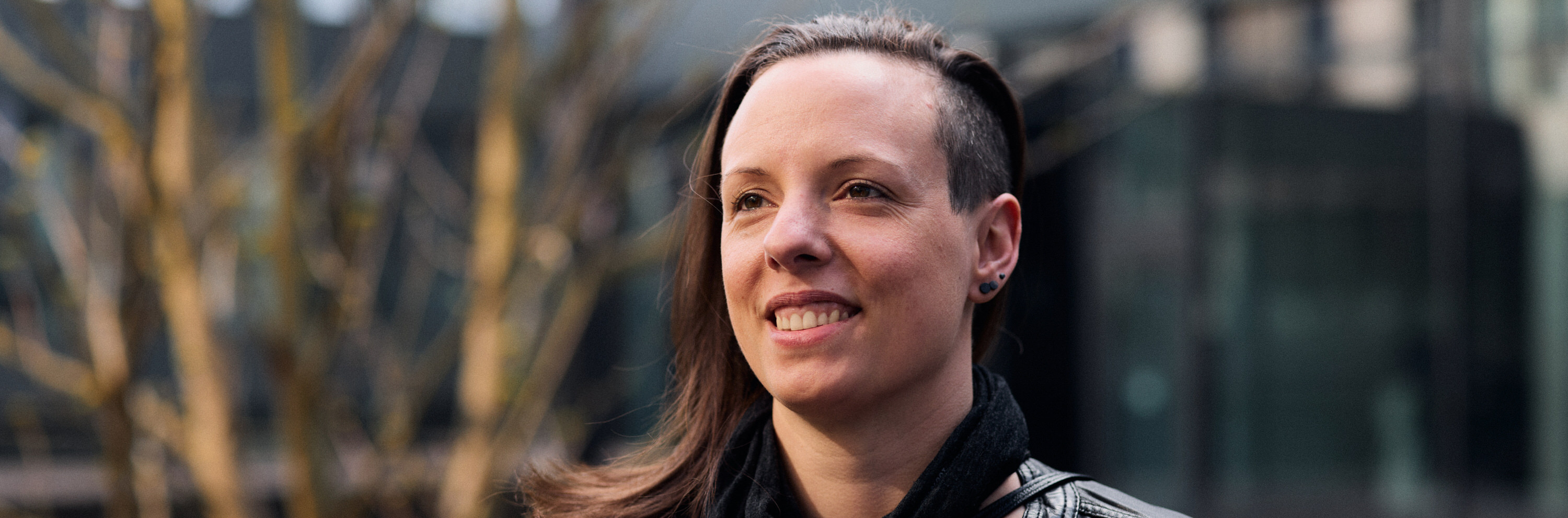 Catharina Schilp vor der Veranstaltung des Startup Awards im Innenhof der HSBI.