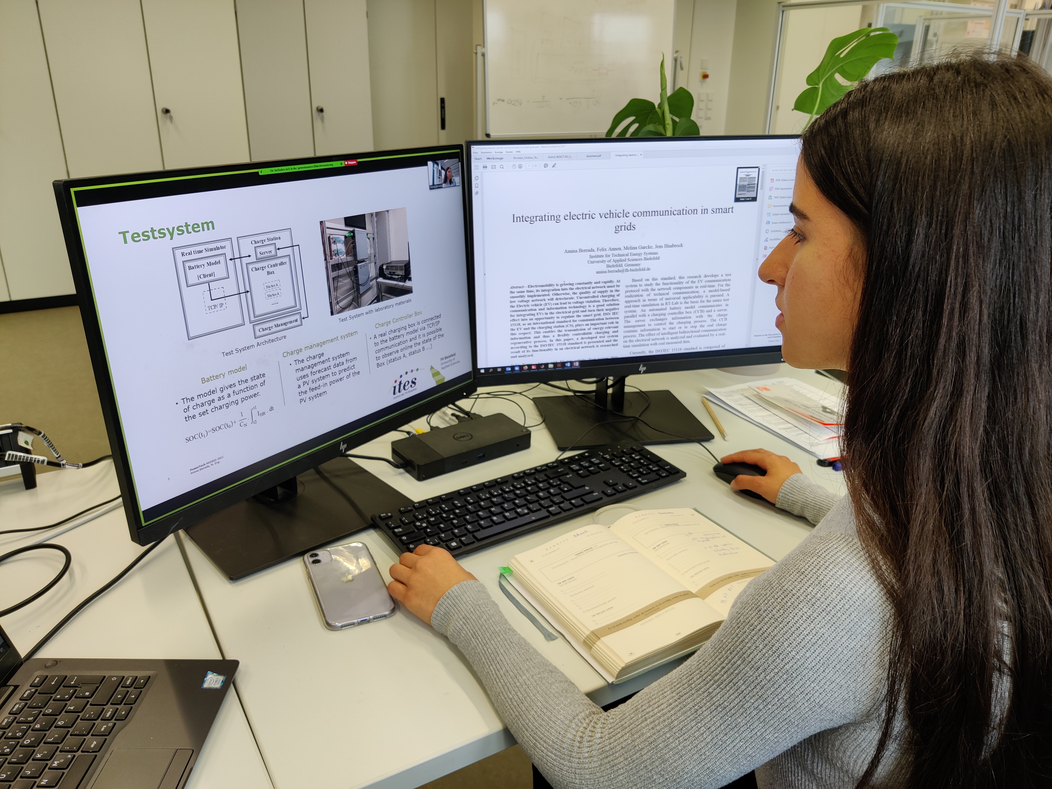 „Wir haben uns in unseren Papern mit der Integration von Elektrofahrzeugen in das elektrische Netz beschäftig“, erklärt Schulte. Dabei hat Berrada die Kommunikation von Elektrofahrzeugen in einem intelligenten Stromnetz untersucht, Schulte hingegen befasste sich mit der Erhöhung der direkt genutzten Photovoltaikleistung zum Laden mehrerer Elektrofahrzeuge. Unterstützender Professor ist Prof. Dr.-Ing. Jens Haubrock, Leiter der AGNES.