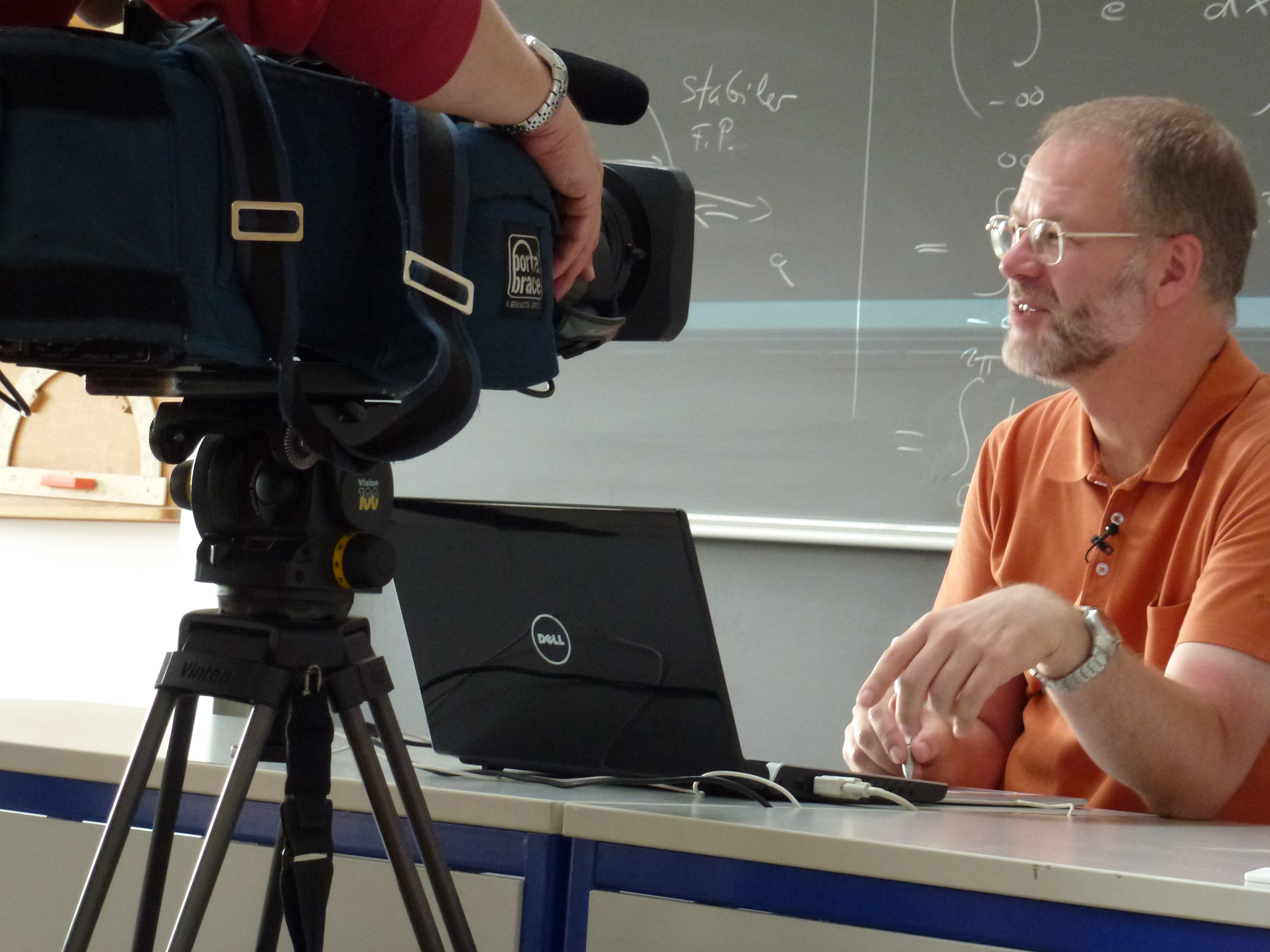 Da stellt sich natürlich die Frage, wie ein russischer TV-Sender den Weg zur Wilhelm-Bertelsmann-Straße gefunden hat. Die Antwort lautet: Sechs Millionen YouTube-Klicks für die Mathevorlesungen von Professor Loviscach vom Fachbereich IuM. Darüber berichtete eine Zeitung in Russland, woraufhin Channel One Russia in Moskau ihre Berliner Redaktion damit beauftragte, ein Porträt über den beliebtesten Mathe-Prof Deutschlands zu drehen. In dem Film gibt Professor Loviscach beispielsweise Nachhilfe in "Doppelintegral in Polarkoordinaten". Und am Ende des Beitrages bleibt nur noch festzuhalten: Mathe? Das ist doch alles ganz easy!