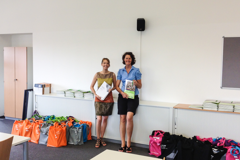 Letzte Woche war es wieder soweit, die neuen Studienbriefe für das WS 2013/2014 für die praxisintegrierten Studiengänge in Gütersloh wurden geliefert. Jetzt hieß es mit vereinten Kräften auspacken, sortieren, zählen und zuordnen. In überörtlicher Teamarbeit zwischen Gütersloh und Bielefeld packten zehn fleißige Hände fest an, um dem vielen Papier Herr zu werden. Es wurden knapp 2000 Studienbriefe für die 83 Neuankömmlinge, sowie die höheren Semester vorbereitet und natürlich ordentlich nach den beiden Studiengängen Wirtschaftsingenieurwesen und Mechatronik/Automatisierung getrennt. Für die Erstsemester wurden die Briefe in bunte FH-Leinenbeutel verpackt. Dazu gab es noch eine vom Gütersloh-Marketing gesponserte Mappe mit vielen nützlichen Informationen und einem Wertgutschein für den Studienort Gütersloh. "Jetzt können die Studis kommen" freuten sich die fünf Helfer nach getaner Arbeit. (wm)