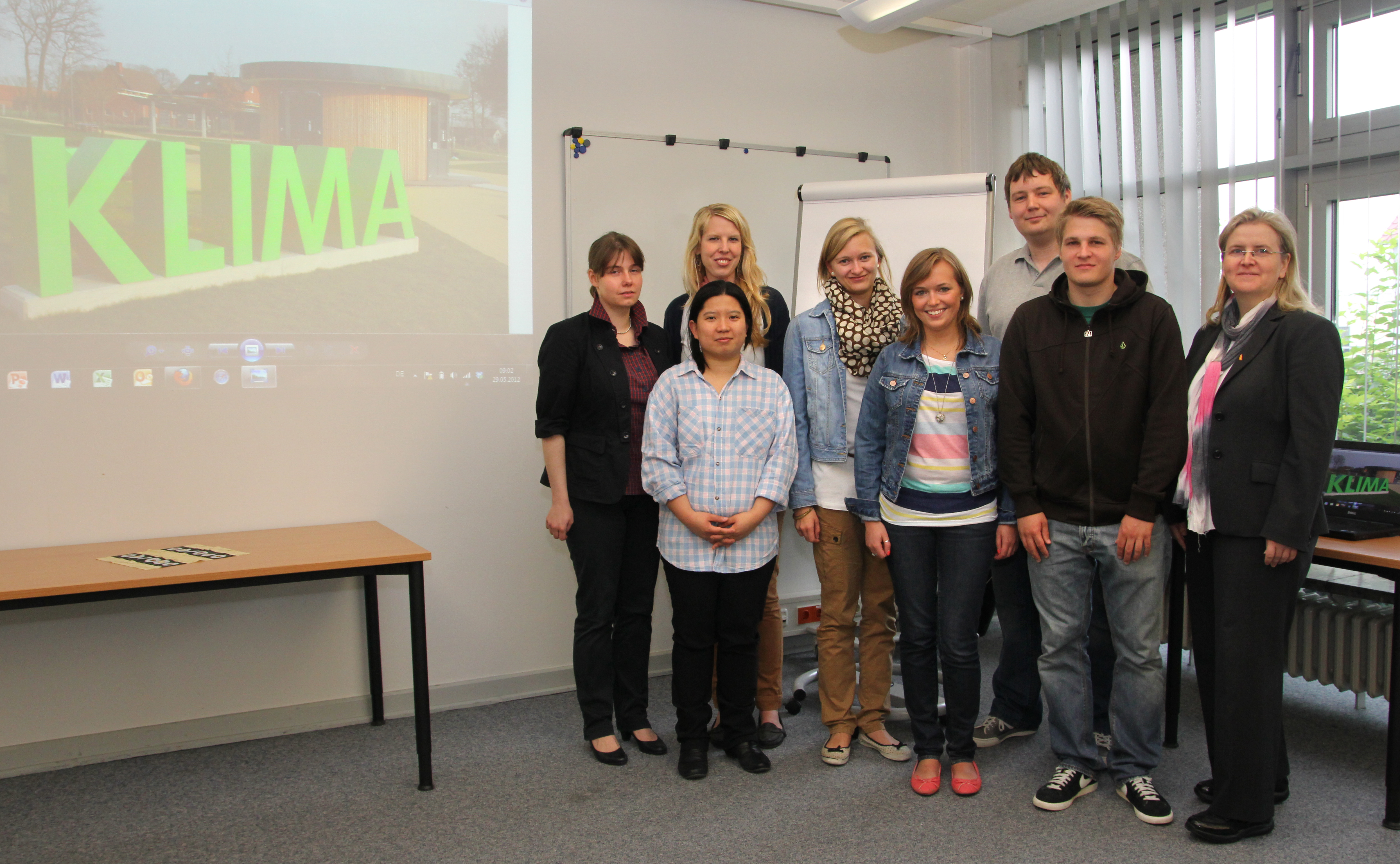 Am 29. Mai 2012 trafen sich die Studierenden der beiden Fachbereiche, um sowohl architektonische als auch ingenieurmäßige Belange bei der Lösung der Bauaufgabe zu berücksichtigen. Während derzeit drei Master-Studentinnen des Studienganges "Integrales Bauen" jeweils einen Entwurf als Genehmigungsplanung für den neuen FH Standort anfertigen, plant eine IuM-Studentin ein FH -Logo in farbiger Photovoltaik, welches am Gebäude angebracht werden soll. Für zwei weitere IuM-Studierende steht die Fragenstellung im Vordergrund, wie die Einsparung des Wärmebedarfs für die Gebäudeversorgung durch den Einsatz solarthermischer Anlagen gewährleistet werden kann. Die Studierenden werden fachlich von Professor Joachim Bahndorf, Professor Niebuhr, Professorin Eva Schwenzfeier-Hellkamp und Professorin Sonja Schöning sowie dem Lehrbeauftragtem Herrn Thole begleitet.
