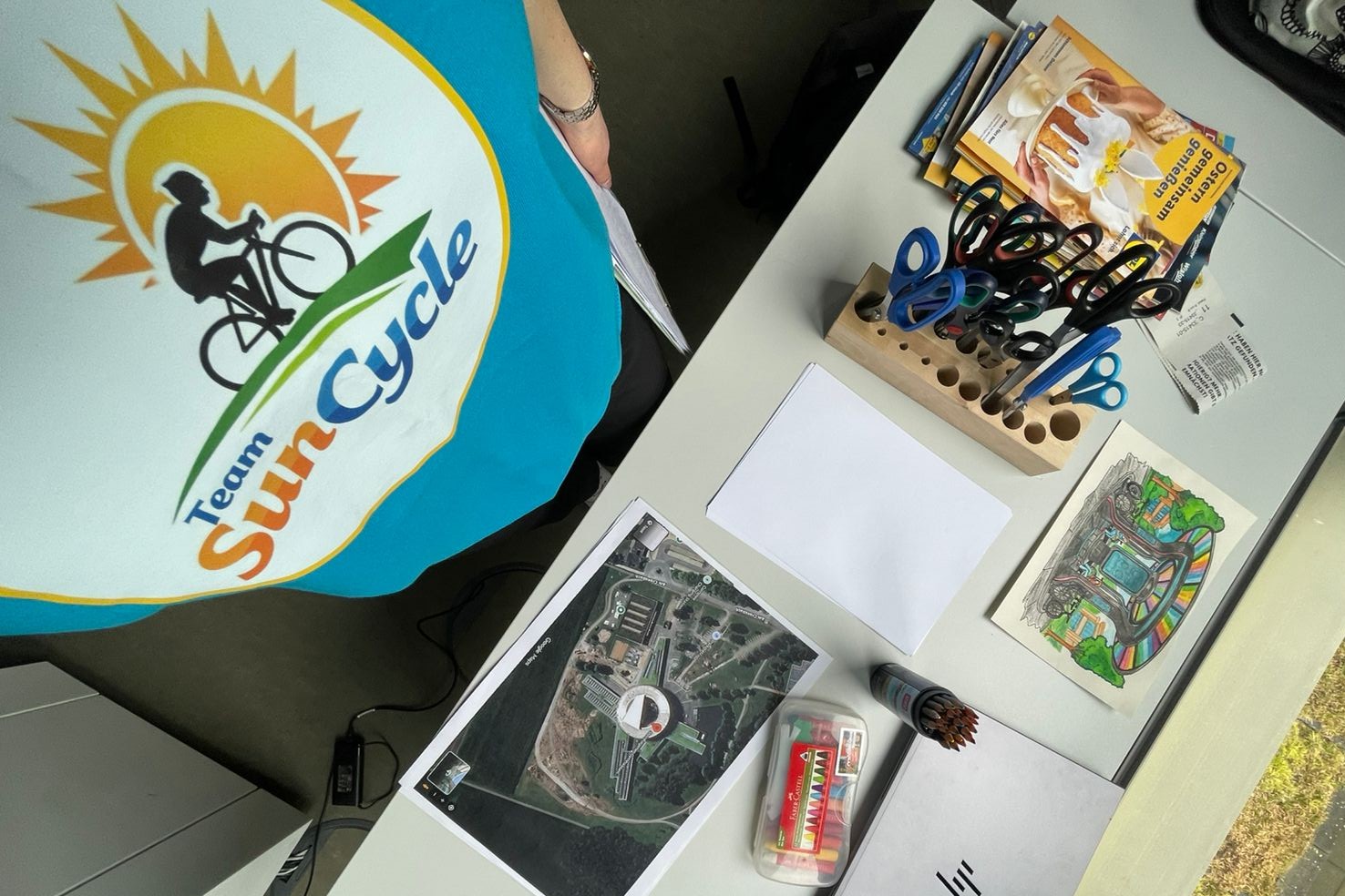Unter anderem entwickelten die Workshopteilnehmer:innen in Kleingruppen eigene Konzepte für eine PV-basierte Ladeinfrastruktur an ihren eigenen Schulstandorten. Dabei gibt es viel zu bedenken: Wo können Ladesäulen und E-Bikes sinnvoll platziert werden? Wie wird die Anlage richtig dimensioniert? Wie hängen PV-Ertrag und Ladeleistung zusammen? Dabei zeigte sich auch, wie unterschiedlich das Nutzerverhalten in den verschiedenen Regionen ist: Während in Belgien die Nutzung von E-Bikes und zunehmend auch von Scootern stark zunimmt, ist in Lappland wegen des kalten Klimas der Einsatz von E-Bikes deutlich geringer, wie Emma Laakso und Heidi Sillanpää aus Finnland erläuterten. Mithilfe von Satellitenbildern, Schere und Kleber planten sie konkret, wo E-Bikes und Ladesäulen sinnvoll platziert werden können, kombinierten ihre Entwürfe anschließend und präsentierten gemeinsam eine optimierte Lösung.