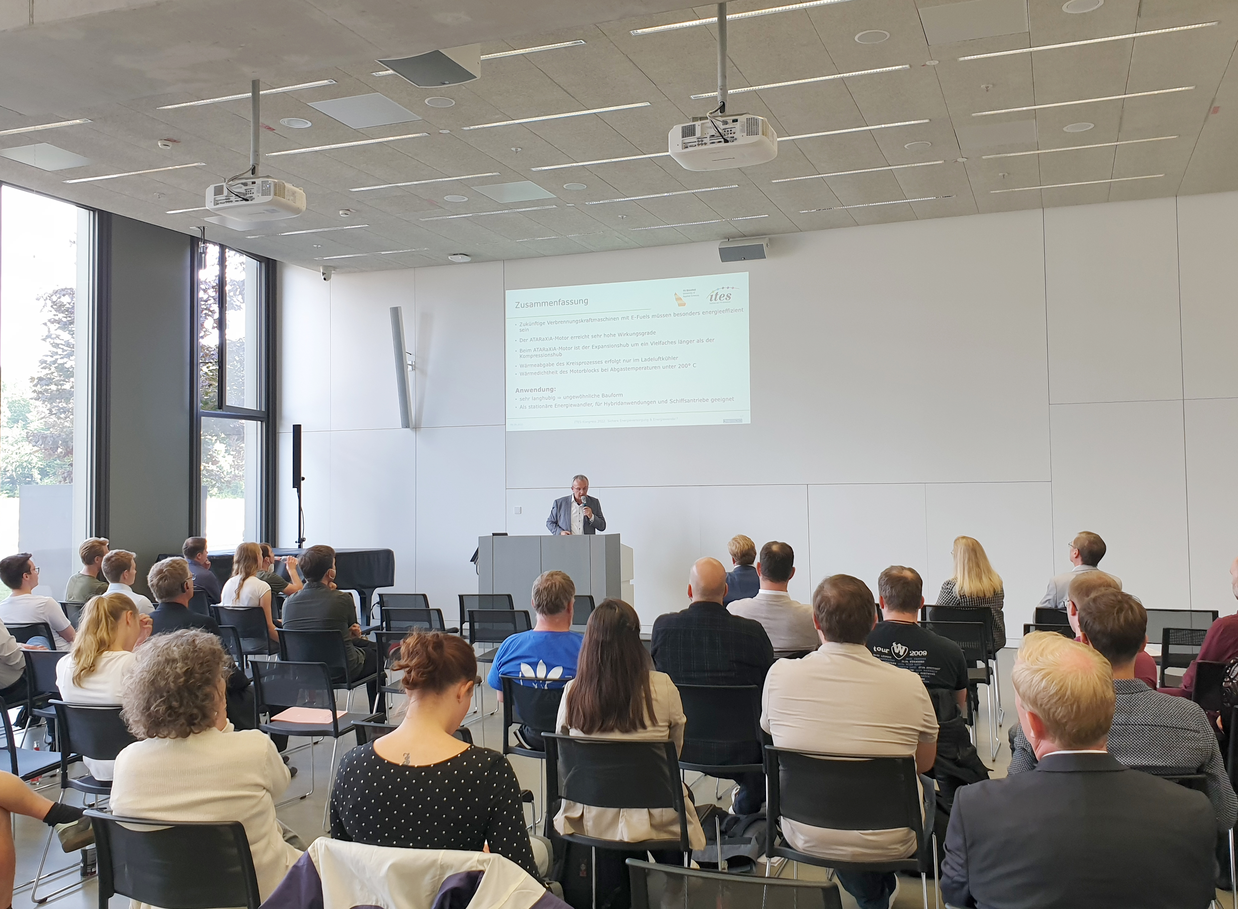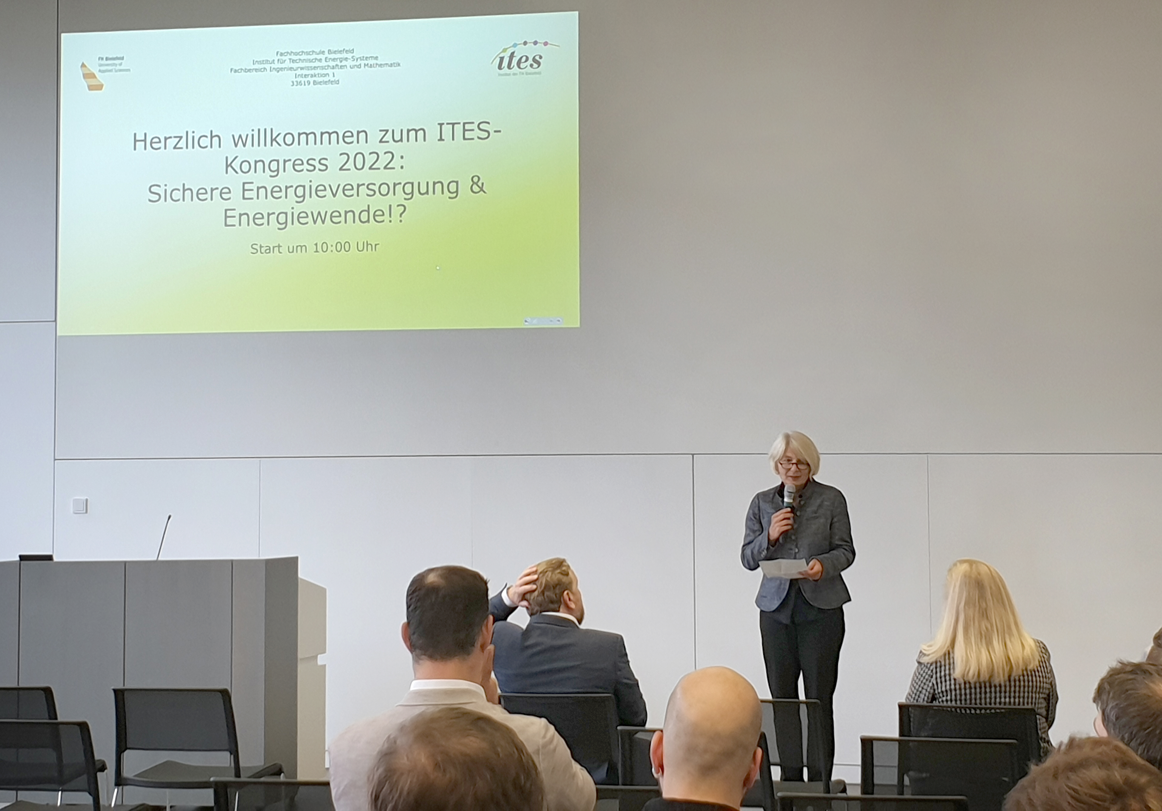 Ist eine sichere Energieversorgung trotz Energiewende möglich? Oder ist gerade die Energiewende und die damit verbundene Unabhängigkeit von fossilen Brennstoffen der Weg zur sicheren Energieversorgung? Diese Fragestellung diskutierten Vertreterinnen und Vertreter aus Hochschule, Industrie und Politik auf dem ITES-Fachkongress am 09. September. Die Gäste der Fachhochschule (FH) Bielefeld erwartete neben Fachvorträgen und einer Podiumsdiskussion auch die Ausstellung von Exponaten und Postern.Begrüßungsrede der FH Präsidentin Prof. Ingeborg Schramm-Wölk zum Auftakt des ITES-Kongress 2022 am 09.09.2022