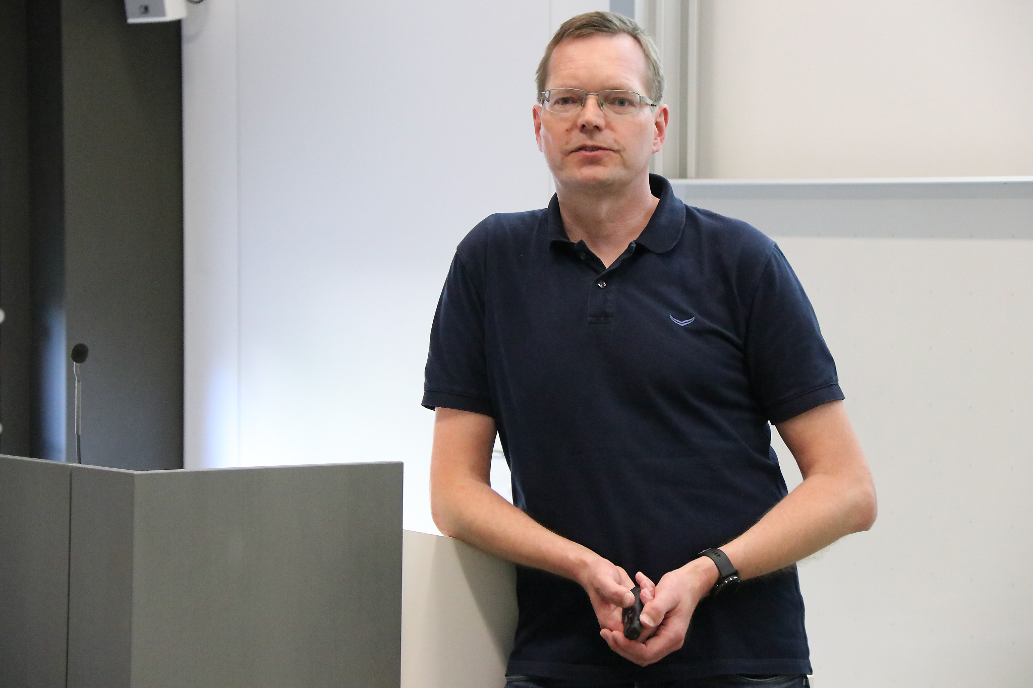 Wissenstransfer in die Region OWL Unter der Überschrift „What´s new?“ verbarg sich der Fachvortrag zu Smoothed Particle Hydrodynamics (SPH, deutsch: geglättete Teilchen-Hydrodynamik) von Michael Stieler, wissenschaftlicher Mitarbeiter des Fachbereichs Ingenieurwissenschaften und Mathematik.