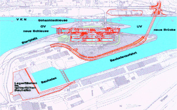 Im Zuge des Ausbaus des Mittellandkanals wird am Wasserstraßenkreuz in Minden eine neue Schleuse geplant. Die vorhandene Schachtschleuse genügt mit ihren Abmessungen nicht mehr den Anforderungen der heutigen Binnenschifffahrt. Die geplante Schleuse wird östlich der vorhandenen Schachtschleuse mit einer Nutzlänge von 139 m und einer Breite von 12,50 m errichtet (s. Bild 1). Der Baubereich wird mit einer Dichtwand eingefasst, um die Auswirkungen der Wasserhaltung zu begrenzen.