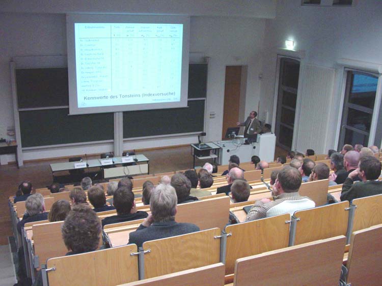 Das 6. Mindener Tiefbaugespräch fand am Dienstag, dem 23. November 2004 unter der Leitung von Prof. Dr.-Ing. Hans-Georg Gülzow im Audi Max des in Minden ansässigen Fachbereichs Architektur und Bauingenieurwesen der Hochschule Bielefeld statt. Der Dekan des Fachbereichs, Prof. Dr.-Ing. Helmut Geistefeldt, konnte gut 70 Teilnehmer begrüßen. Anlass für das diesjährige Thema sind Schadensfälle beim Bauen in den regionalen, quellfähigen Tonsteinen aus der Kreide, dem Jura und der Trias.