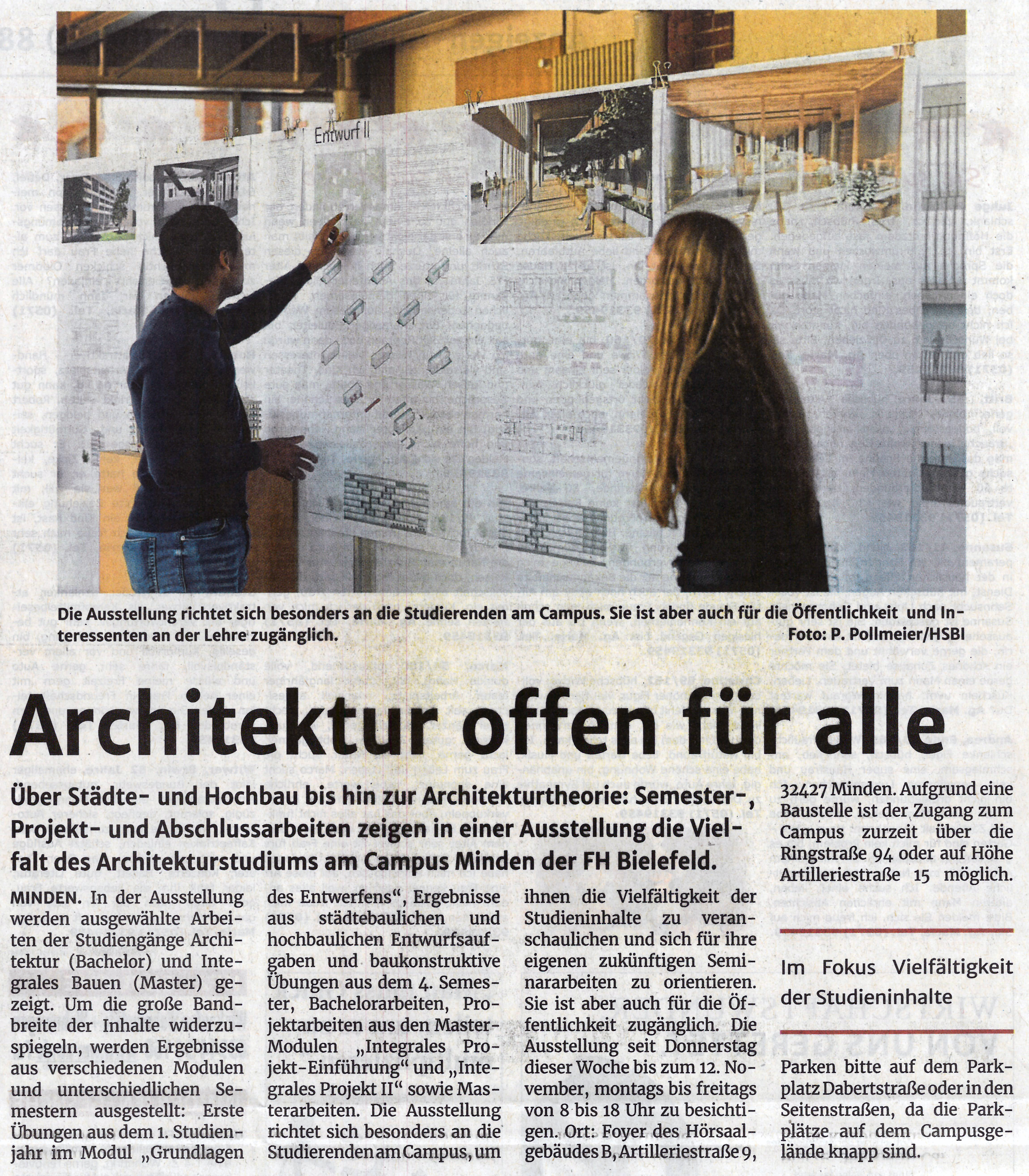Über Städte- und Hochbau bis hin zur Architekturtheorie: Semester-, Projekt- und Abschlussarbeiten zeigen in einer Ausstellung die Vielfalt des Architekturstudiums am Campus Minden der FH Bielefeld.