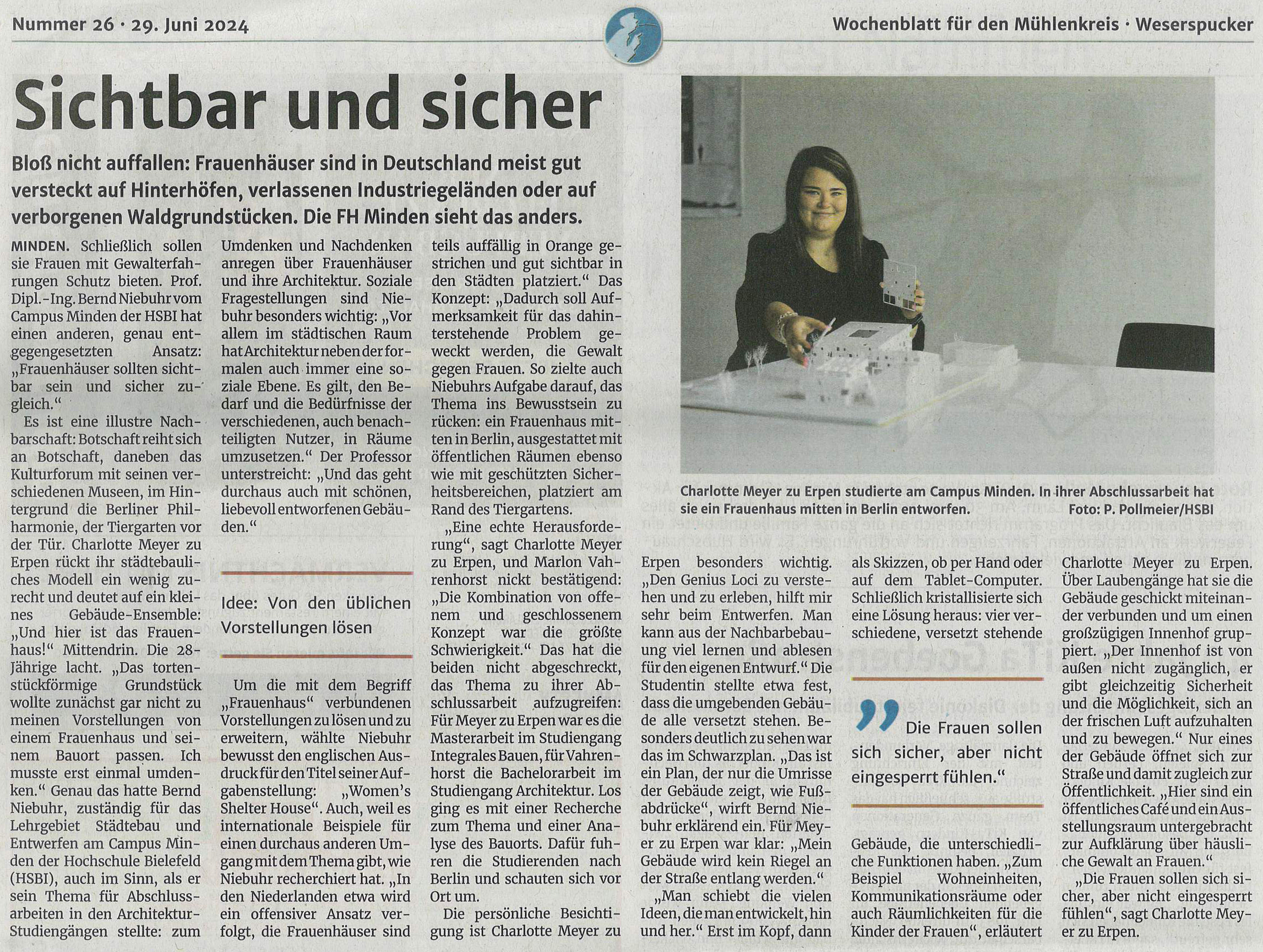 Zwei Architektur-Studierende vom Campus Minden der Hochschule Bielefeld entwerfen ein sogenanntes Women's Shelter House in Berlin. So wollen sie auf Gewalt gegen Frauen aufmerksam machen.