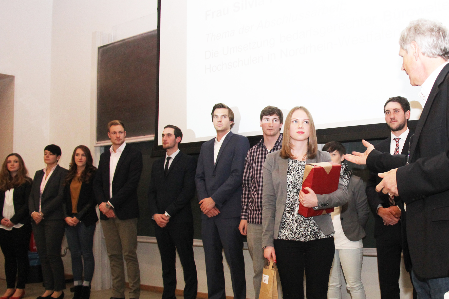 Im Studiengang Projektmanagement Bau gab es unter den 25 Absolventen zwei mit der selben Bestnote: Silvia Plettenberg schrieb ihre Abschlussarbeit über "Die Umsetzung bedarfsgerechter Bürowelten an Hochschulen in Nordrhein-Westfalen". Dabei ging es jedoch nicht um die Fachhochschule Bielefeld, sondern um den Neubau der Hochschule Hamm-Lippstadt.
