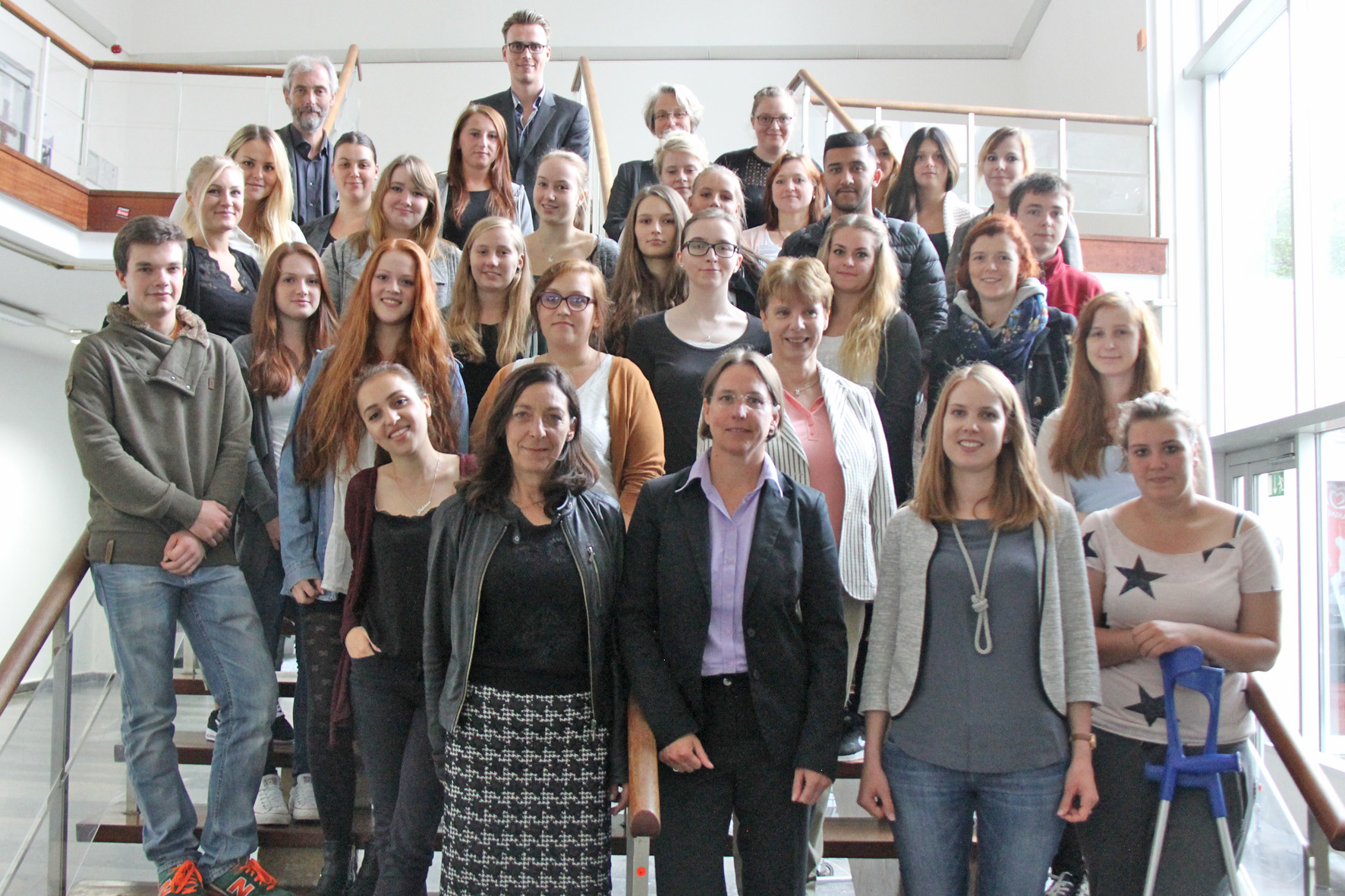 Zum Abschluss richteten zwei Studentinnen des siebten Semesters, Karolina Anna Flügel und Lena Nowatzke, ihre Worte an die neuen "Erstis": "Wir waren damals auch sehr aufgeregt, aber heute haben wir bereits den größten Teil unseres Studiums geschafft. Es war eine aufregende, abwechslungsreiche, schöne, aber auch schweißtreibende Zeit", so Nowatzke. Zwar werde man am Anfang von den vielen Fremdwörtern erschlagen, "doch mit der Zeit werdet ihr alles verstehen", versprach Nowatzke. Karolina Anna Flügel berichtete, dass sie während ihrer Praxiseinsätze selbst erlebt habe, dass ein großer Bedarf an akademisierten Pflegekräften bestehe. Gleichzeitig betonte sie, dass gute Pflege nicht die Versorgung innerhalb weniger Minuten bedeute.