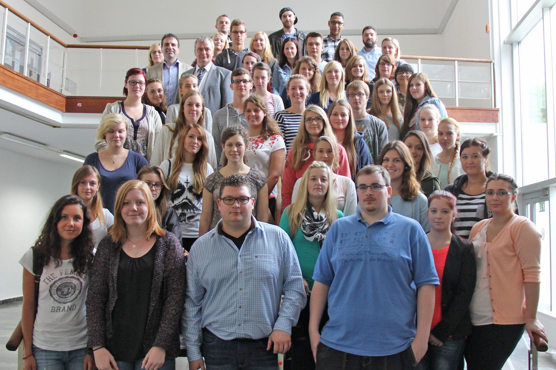 Bielefeld (fhb). Am Dienstag, 1. September 2015, haben 75 Erstsemester ihr duales Bachelorstudium der Gesundheits- und Krankenpflege an der Fachhochschule Bielefeld begonnen. Mit dem dualen Studiengang absolvieren die Studierenden parallel zum Studium die Ausbildung zum Gesundheits- und Krankenpfleger oder zur Gesundheits- und Krankenpflegerin in Kooperation mit der Akademie für Gesundheitsberufe der Mühlenkreiskliniken (MKK) in Minden und der Zentralen Akademie für Gesundheitsberufe in Gütersloh (ZAB). 45 der neuen Erstsemester werden auf dem Campus Minden studieren, 30 auf dem Campus Bielefeld und in Gütersloh. "Der Studiengang ist dual und integrativ: Die theoretischen Inhalte der Fachhochschule und der Pflegeschulen werden mit Praxisphasen in Kliniken und ambulanten Pflegeeinrichtungen verknüpft. Damit sind sie Studierende und Auszubildende gleichzeitig", sagte Studiengangsleiterin Prof. Dr. Änne-Dörte Latteck zur Begrüßung im Audimax des Fachbereiches Gestaltung der FH Bielefeld.