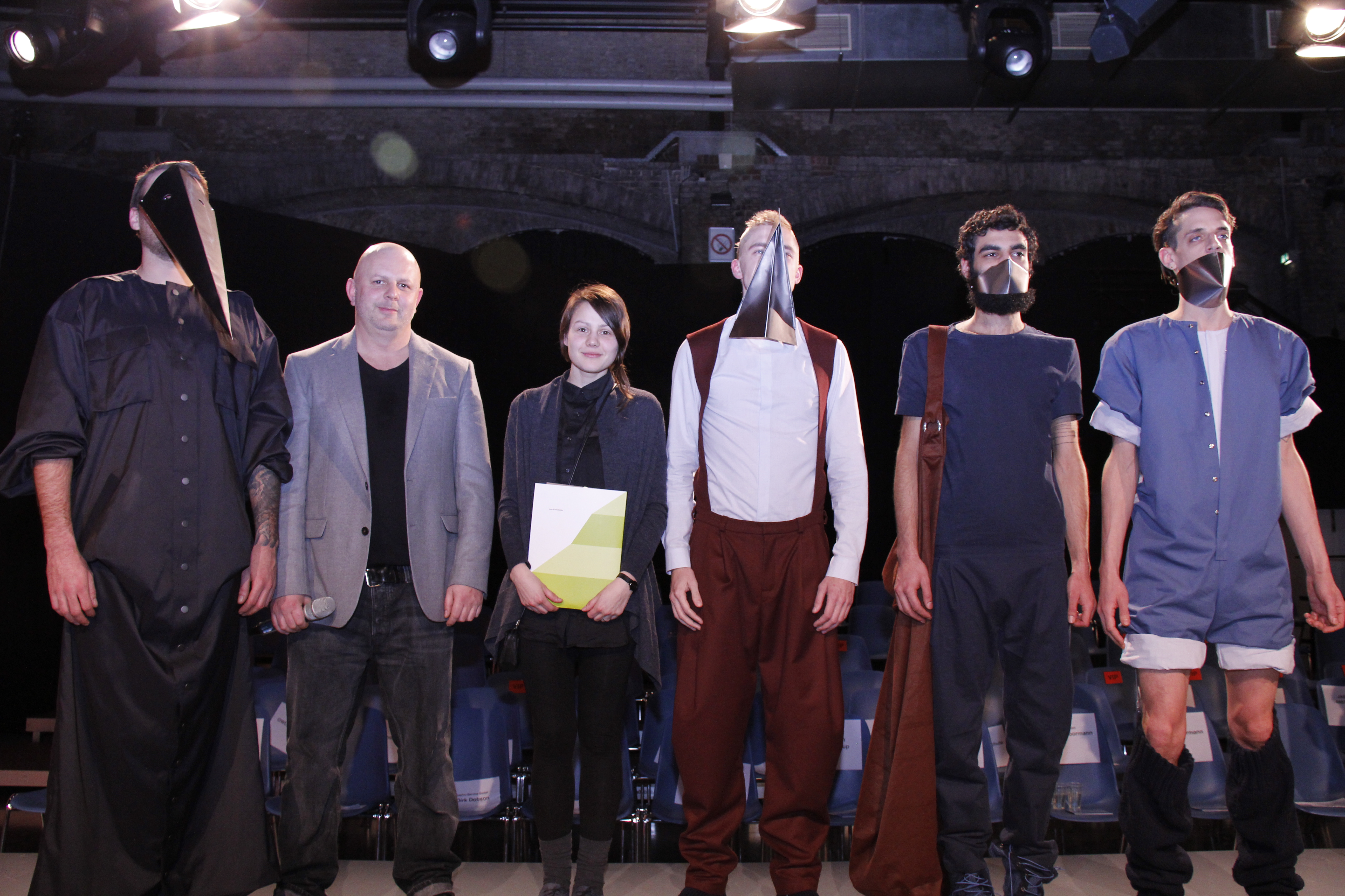 Für die beste künstlerische Arbeit wurde Bachelor-Absolventin Daniela Macuh mit dem Bielefelder Modepreis für Jungdesigner ausgezeichnet. Mit ihrer Kollektion "Eisenhans", die von Professor Kai Dünhölter und Johannes Assig betreut wurde, präsentierte sie ein neues Männlichkeitsbild. Stereotypische Vorstellungen werden entschärft, ohne dabei in Verweichlichung umzuschlagen. So trägt der Mann von Heute nach Macuhs Vorstellungen eine Handtasche im XXL-Format und Strumpfhalter. Zudem erfährt der Overall bei ihr ein Comeback. So fertigte Macuh aus dem klassischen Dreiteiler, bestehend aus Anzughose, Hemd und Weste, einfach ein einziges Outfit. Die Auszeichnung mit dem Bielefelder Modepreis für Jungdesigner, der mit 1000 Euro dotiert ist, kommt für Macuh genau zur richtigen Zeit: "Ich habe für meine Abschlussarbeit viel Geld ausgegeben, da wir Stoffe und das ganze Nähzeug selbst kaufen müssen. Um mich wegen des Geldes nicht verrückt zu machen, habe ich erst einmal nur die Kassenbons gesammelt aber die werde ich jetzt in den nächsten Tagen mit einem leichteren Gefühl zusammenrechnen."