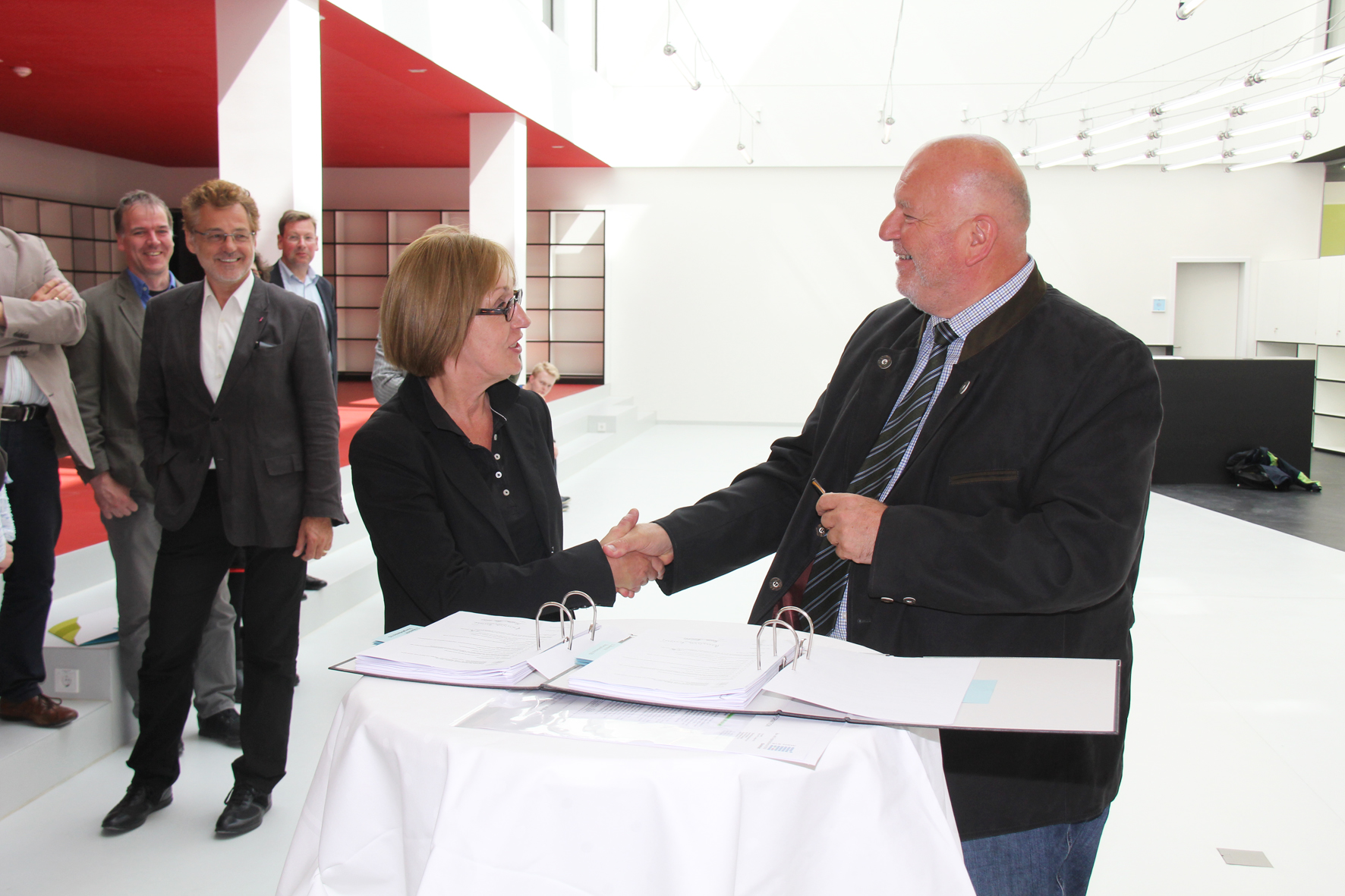 Heinrich Micus und Professorin Dr. Beate Rennen-Allhoff bedankten sich im Anschluss an die formale Übergabe, die im kleinen Kreis stattfand, bei allen Beteiligten des BLB und der Fachhochschule, dazu zählen die Mitarbeiter des Dezernats Gebäudemanagement, alle beteiligten Professorinnen und Professoren, Mitarbeiterinnen und Mitarbeitern des Campus Minden und die Studierenden, die ihre Ideen für das Gebäude eingebracht haben. "Das Projekt ist wirklich reibungslos abgelaufen und wir haben ein tolles Ergebnis", sagte Rennen-Allhoff.