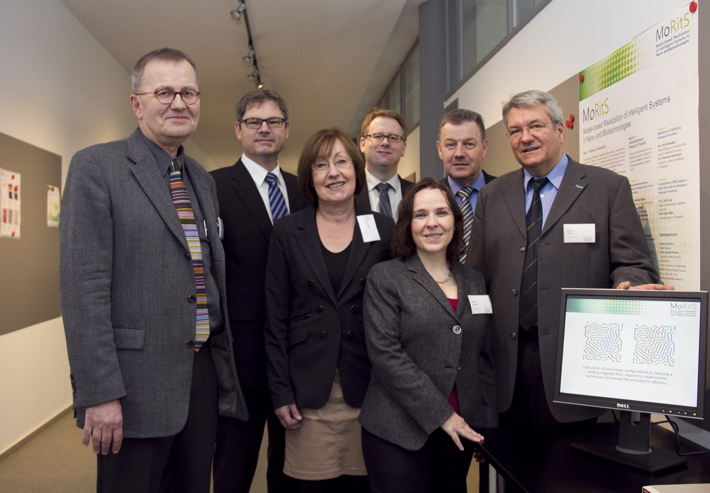 Bielefeld (fhb). "MoRitS ist eine einzigartige Zusammenarbeit von Universität und Fachhochschule", stellte Prof. Dr. Andreas Hütten fest, als er heute im Zentrum für interdisziplinäre Forschung (ZiF) der Universität Bielefeld zahlreiche Gäste aus Wirtschaft und Wissenschaft begrüßte. Gemeinsam ist der Universitäts-Professor mit seinem Kollegen von der Fachhochschule Bielefeld, Prof. Dr. Christian Schröder, Sprecher des MoRitS-Projekts, eines Forschungskollegs, das mit vollen Namen "Modellbasierte Realisierung intelligenter Systeme in der Nano- und Biotechnologie" heißt. Es ist eines von sechs Projekten, die sich bei dem Wettbewerb "NRW.Forschungskooperationen Universität & Fachhochschule" erfolgreich behauptet hatte. MoRitS wird deshalb vom NRW-Wissenschaftsministerium drei Jahre lang mit insgesamt 1,5 Millionen Euro gefördert. Zwar arbeiten die MoRitS-Mitarbeiter schon seit einiger Zeit in mittlerweile fünf Projekten zusammen. Die offizielle Eröffnung fand aber erst jetzt statt.