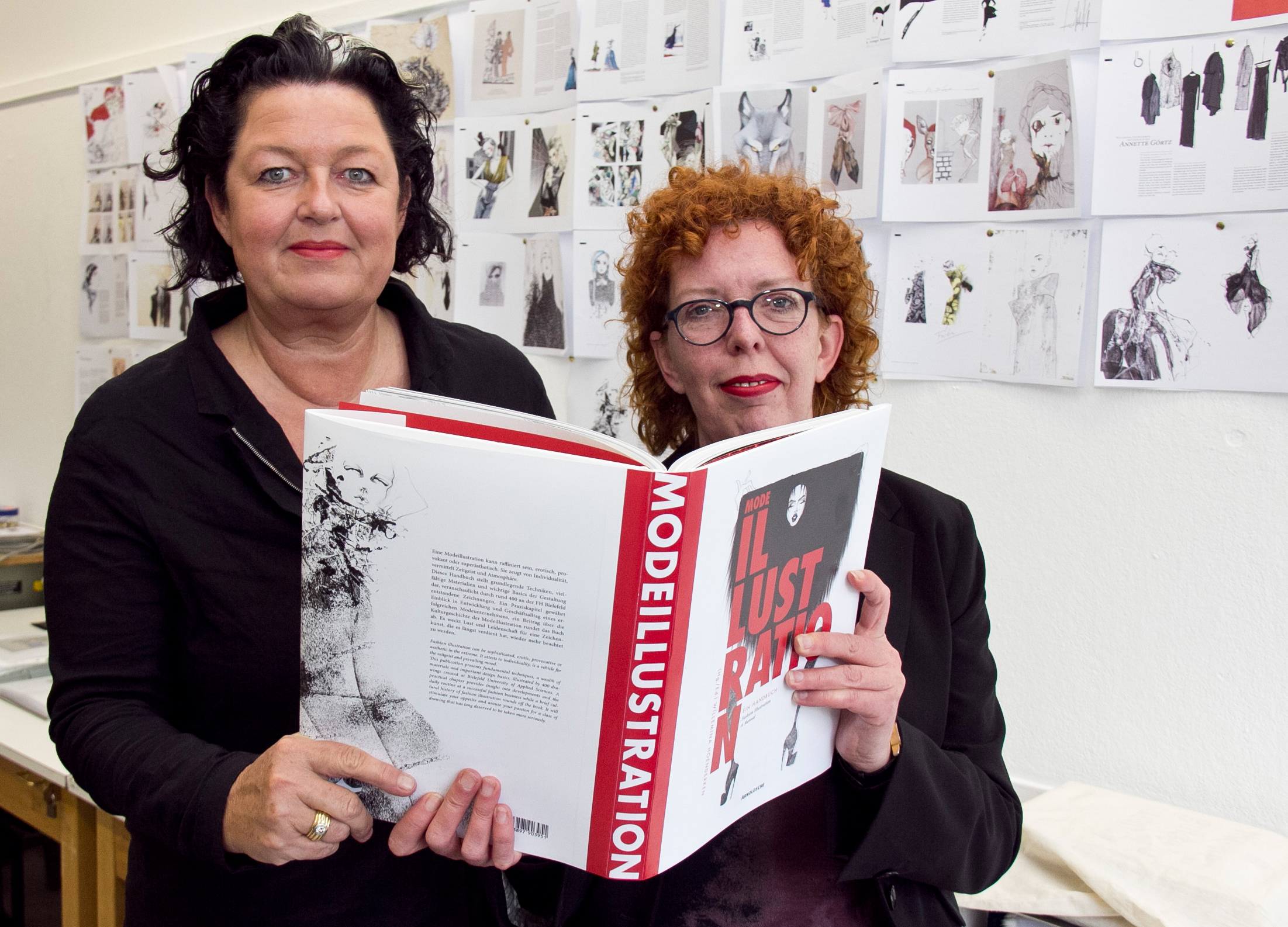 Die Gestaltung der "MODEILLUSTRATION" stammt ebenfalls aus den studentischen Reihen. Die Masterstudierenden Svenja Hemke und Tobias Kunkel sowie die Bachelorstudentin Eugenie Koch haben das dicke Buch geschickt zusammengestellt. "Jede Seite ist ein kleines Kunstwerk geworden. Es war nicht gerade einfach, eine klare Linie zu bekommen, weil die Zeichnungen alle so verschieden sind", sagt Hemke. "Ohne die Unterstützung der Studierenden wäre das Buch nicht zu Stande gekommen", bedankte sich Professorin Hoenderken.