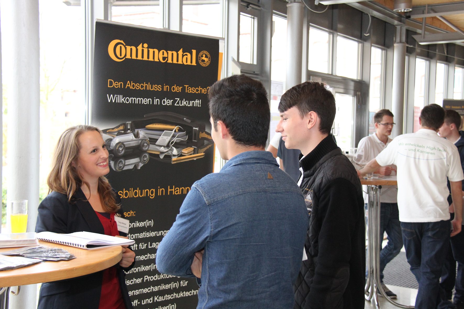Interessierten erste Kontakte knüpfen, zum Beispiel bei Daniela Brockmeyer von der Denios AG aus Bad Oeynhausen."Wir haben derzeit Stellen für Wirschaftsingenieurwesen und Maschinenbau zu besetzen. Der Bewerbungsschluss für den Studienbeginn im August 2015 ist bei uns allerdings schon Ende Oktober. Aber wer heute einen guten Eindruck gemacht hat, kann sich natürlich noch bewerben", so die Leiterin der Personalabteilung.