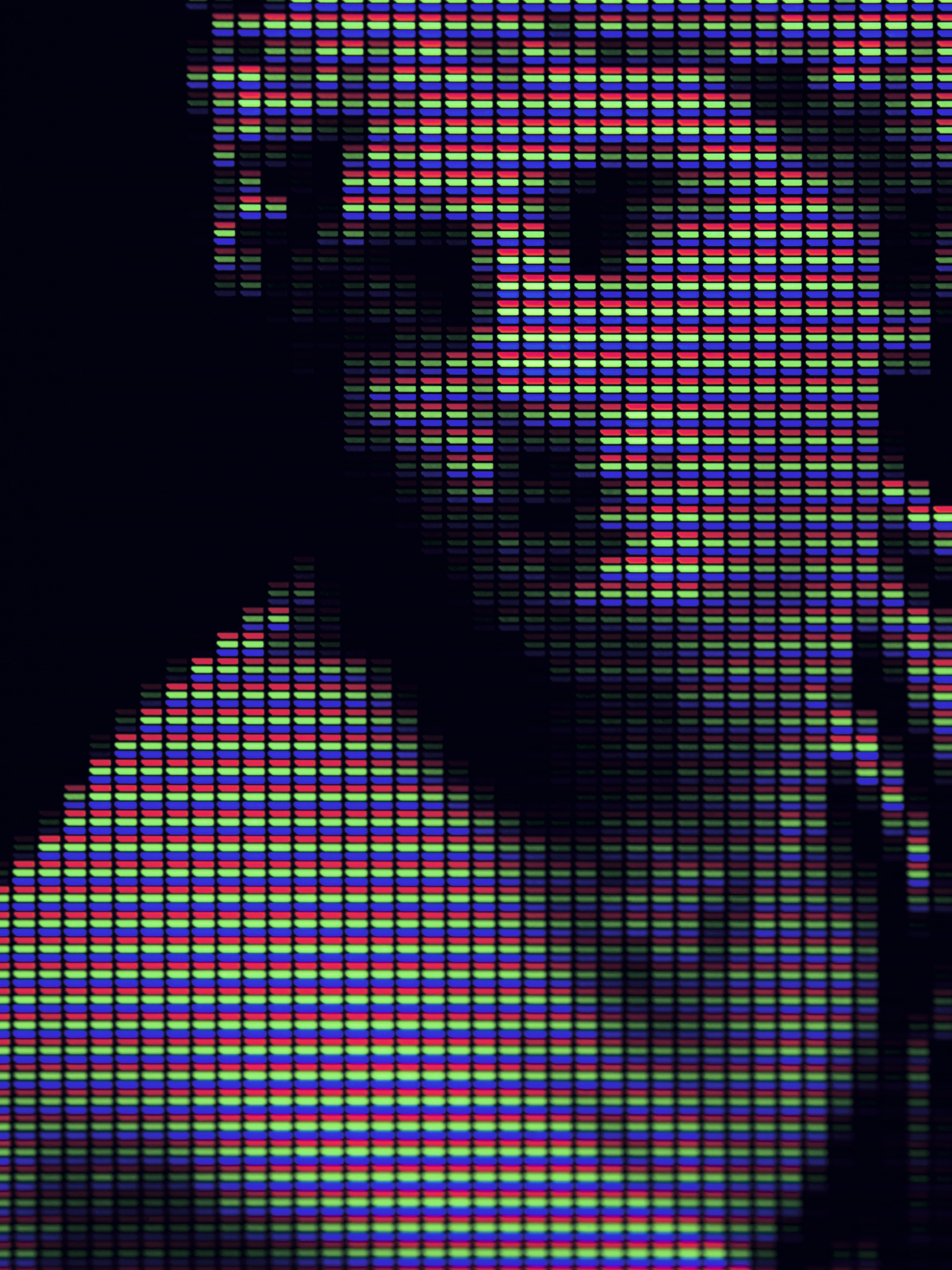 Mit dem Thema "Dynamische Entwicklung" hat sich Student Anton Herbst auseinandergesetzt. Er studiert seit 2012 an der FH Bielefeld und ist im 4. Bachelorsemester. Zwischen der Geschirr-Linie "Format Transealed" und seiner Fotografie herrscht auf den ersten Blick die größte Ähnlichkeit. Sowohl Geschirr-Designer als auch Fotograf arbeiten mit kleinen Farbpunkten, aus denen Strukturen und Formen entstehen. "Ich habe das Bild einer Skulptur auf einem Monitor abfotografiert. Allerdings so stark vergrößert, dass die einzelnen Pixelpunkte sichtbar werden und das ganze Bild nur aus roten, grünen und blauen Strichen entsteht", sagt Anton Herbst. Trotzdem ist die Figur eindeutig als solche zu erkennen. "Ich wollte sowohl einen Kontrast herstellen als auch das Gestern und Heute miteinander verbinden. Bildhauerische Perfektion trifft auf die Welt des digitalen Bildes", so der Student.