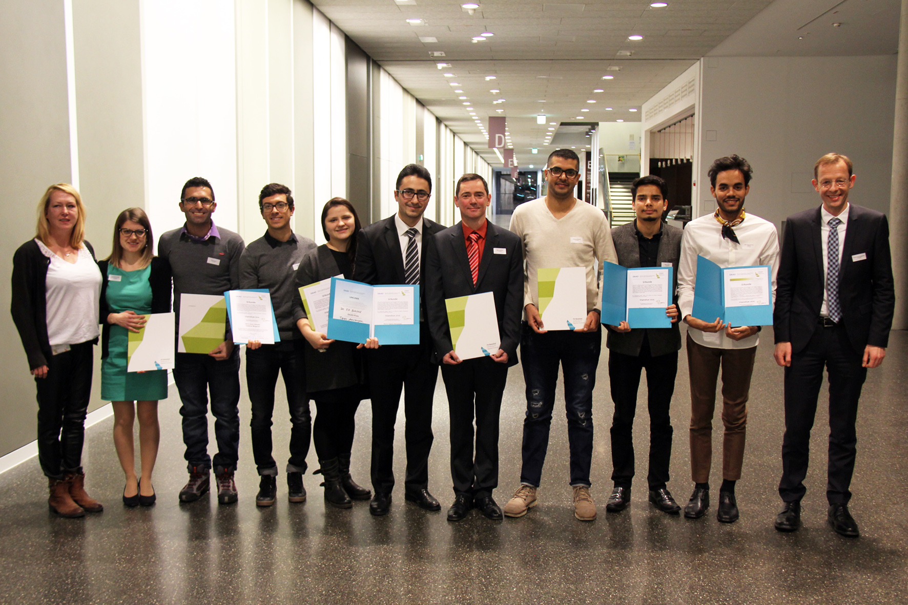 Mit dem von der Firma CLAAS unterstützten Matching Funds-Stipendium wurde Luisa Alexandra Zabel aus Portugal auszeichnet. Sie studiert im Bachelor Wirtschaftsinformatik im 3. Semester und ist Tutorin für internationale Studierende beim Akademischen Auslandsamt. Weitere Stipendien gingen an Mustafa El Gharrafi aus Marokko, Bachelorstudent der Regenerativen Energien im 5. Semester und José Leonardo Redondo Valverde. Er stammt aus Kolumbien und studiert im Bachelor Mode im 1. Semester. Aus Russland ist Eugen Giesbrecht nach Deutschland gekommen. An der FH studiert er im Bachelor Wirtschaftspsychologie im 7. Semester. Yulia Lebedeva aus Weißrussland studiert Mode im Master im 3. Semester. Im 6. Bachelorsemester studiert Bibhour Niraula aus Nepal Betriebswirtschaftslehre. Jesus Eduardo Sandoval Melgarejo kommt aus Mexiko und ist im 7. Bachelorsemester der Mechatronik.