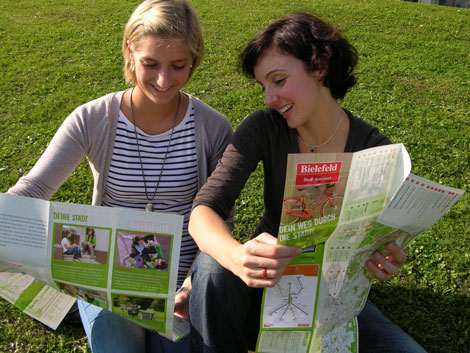 Wie bei dem 2009 erstmals erschienenen Vorgängermodell handelt es sich in erster Linie um einen informativen Lageplan. Der ausfaltbare Stadtplan ist detaillierter geworden. Von den Studienstätten über Parkanlagen im Grünen, Freizeit‑ und Kultureinrichtungen sowie Sportangeboten bis zu Lokalitäten zum Ausgehen finden studentische Neuzugänge erste Orientierungshilfen. Auch die Erweiterung des Campus Bielefeld ist bereits eingezeichnet. Ganz neu gestaltet ist die Rückseite: Waren zuvor alle Studiengänge aufgelistet, liegt jetzt der Schwerpunkt auf Infos zur Stadt Bielefeld.