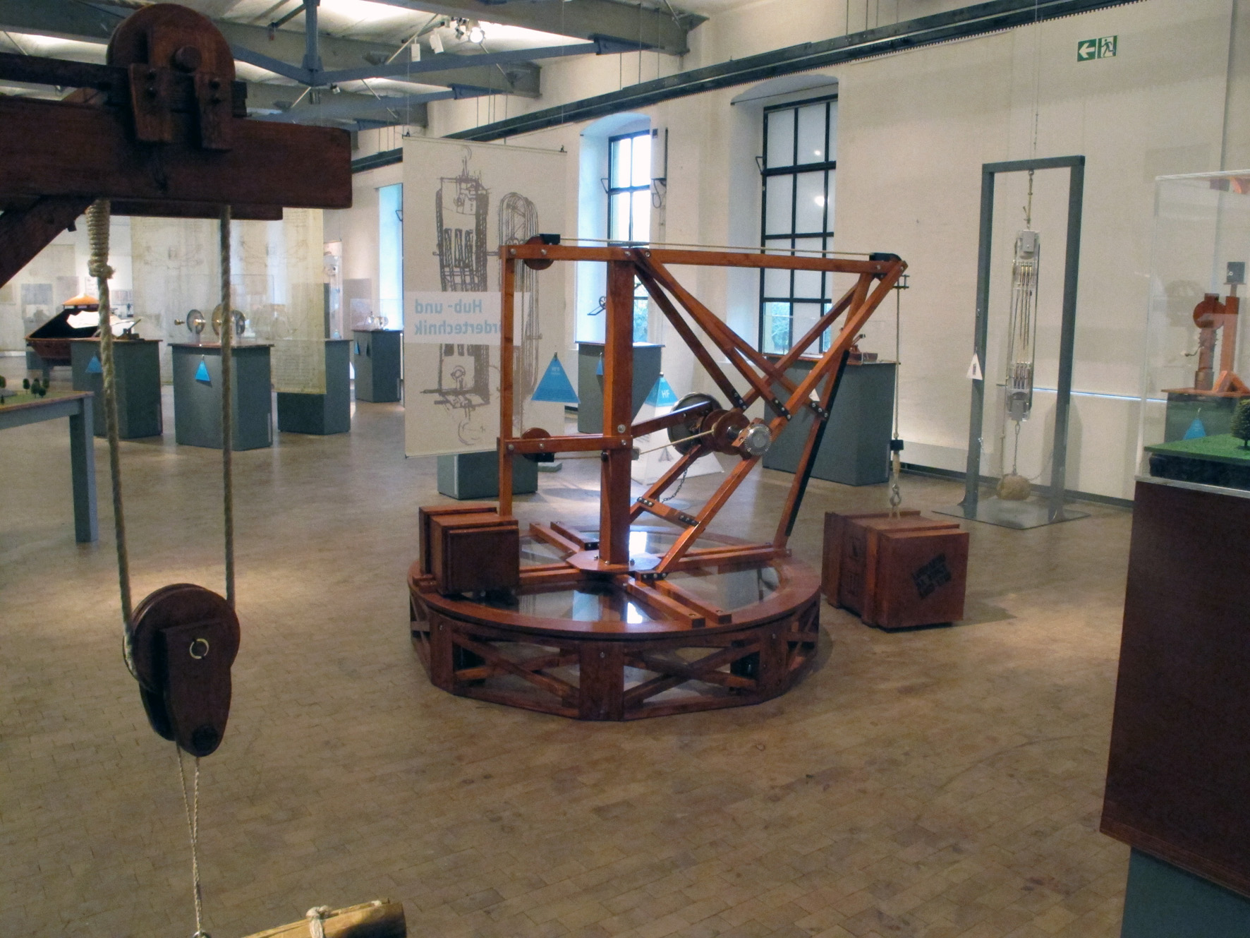 Aufgestellt im Museum sind beispielsweise Modelle von Fahrzeugen, von Hebegeräten und unterschiedlichen mechanischen Antrieben, die einen Einblick geben in Leonardos Gedankenwelt. Und die Ausstellung will, neben dem ganz normalen Neugierigen, insbesondere Schulklassen ansprechen. Zurzeit wird außerdem an einem museums-pädagogischen Konzept in Kooperation mit dem ZDI-Schülerlabor des Fachbereichs IuM gearbeitet, das kleine Schülergruppen in die besondere Erfahrungswelt von Leonardo und in die Welt der Technik einführen will. Professor Langer: "Wir schlagen eine Brücke über 500 Jahre und dennoch scheint der Altmeister lebendig und aktuell dabei zu