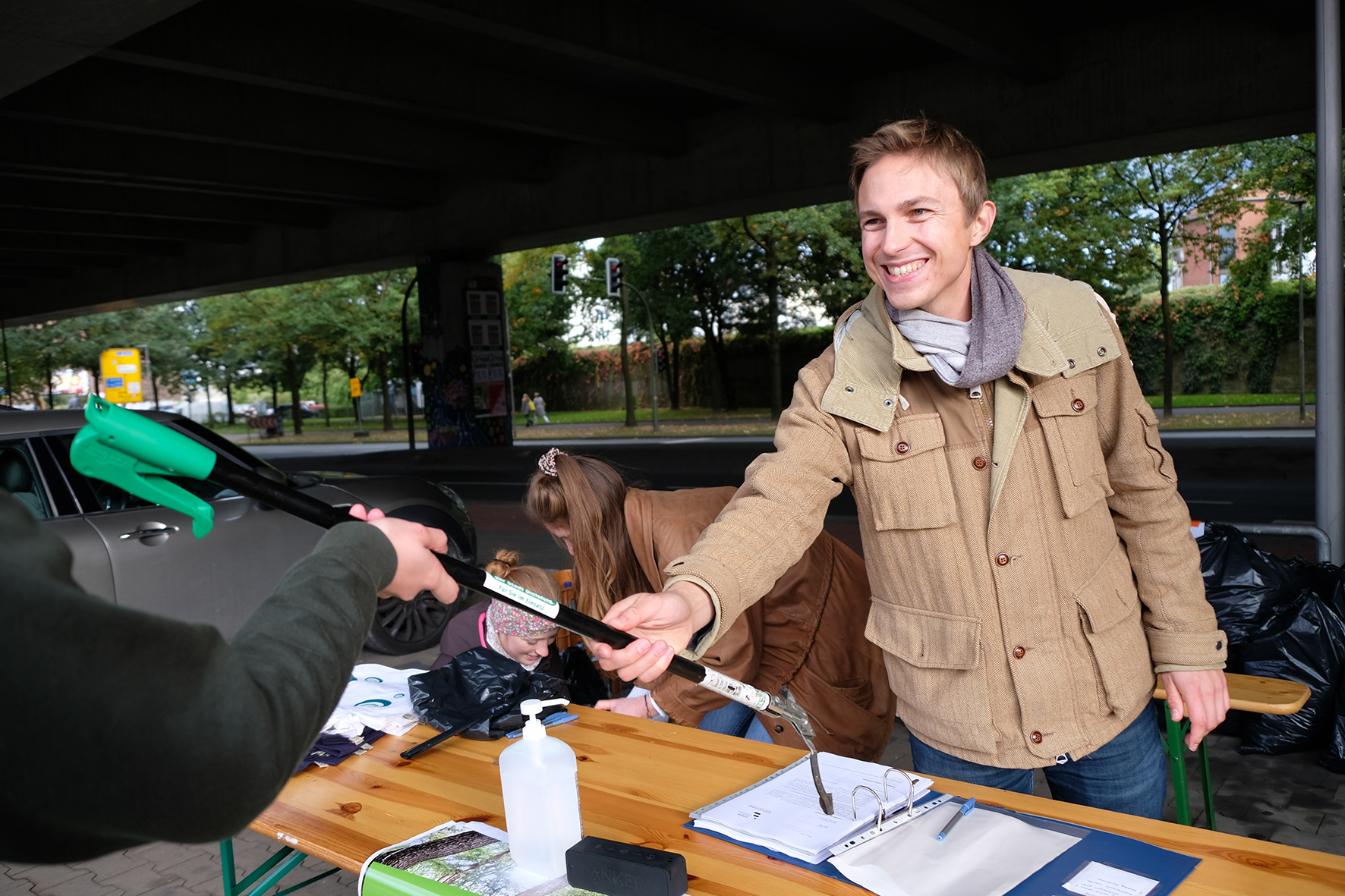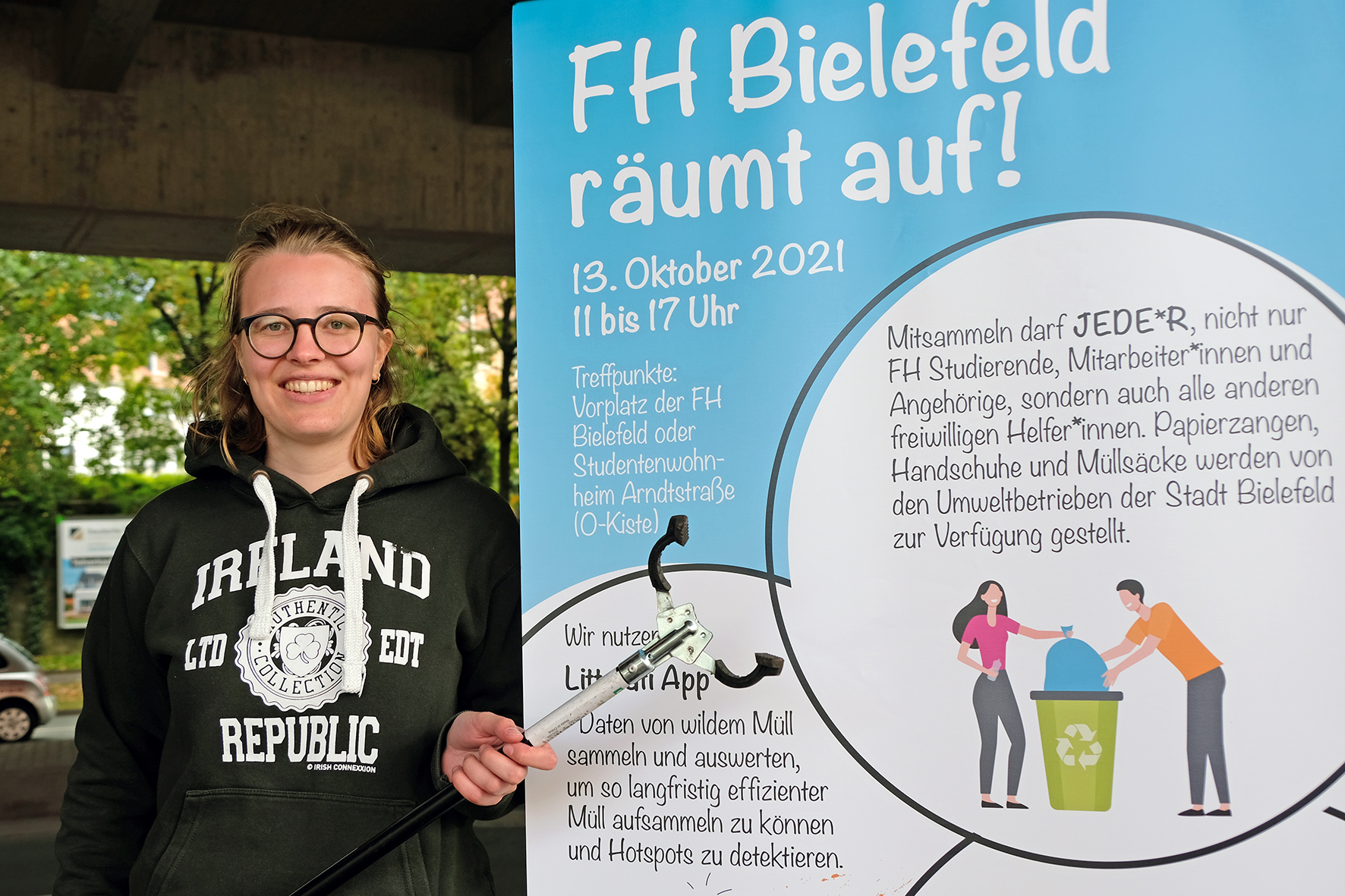 Von 11 bis 17 Uhr konnte auf dem Vorplatz der FH Bielefeld und vor dem Studierendenwohnheim „Orangenkiste“ an der Arndstraße das vom Umweltbetrieb bereitgestellte Equipment – bestehend aus Handschuhen, Müllbeuteln und Greifzange – abgeholt werden. Bereits im August gab es einen ersten Aufschlag der Aktion an FH Bielefeld.