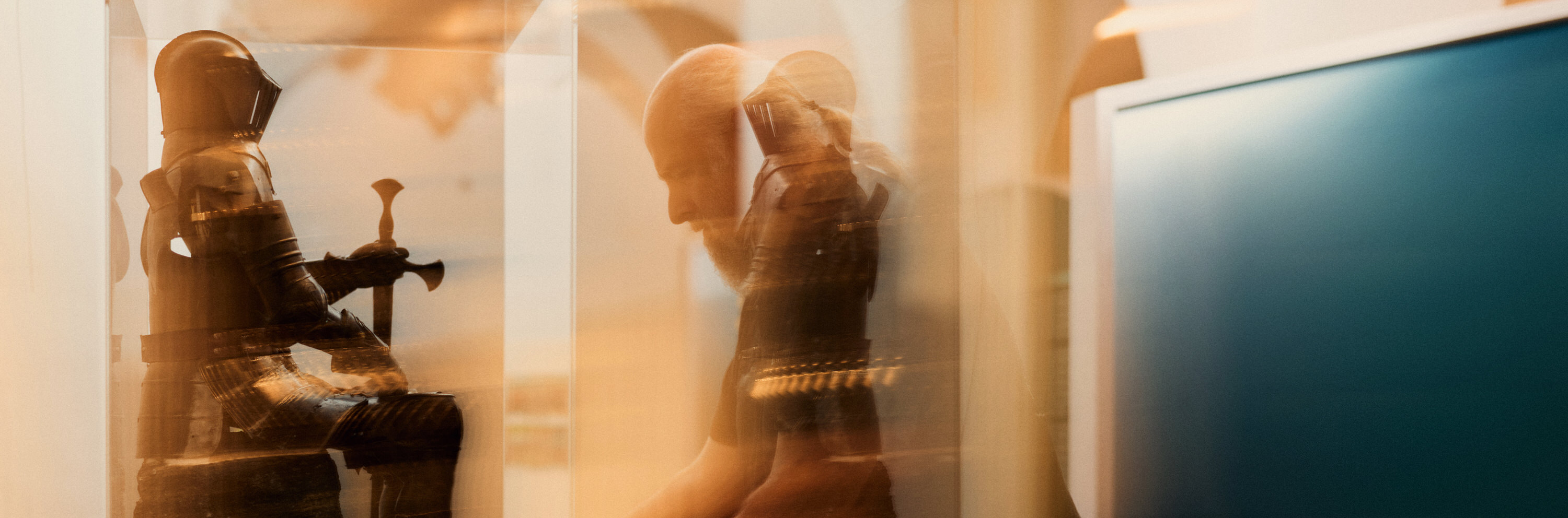 Bielefeld (hsbi). Vorsichtig, ganz vorsichtig. Andreas Wollensak, wissenschaftlicher Mitarbeiter und Kurator der Ausstellung DaVinci@HSBI der Hochschule Bielefeld (HSBI), zieht einen großen, abgedeckten Kasten aus dem Transporter im Hof von Schloss Brake in Lemgo. Ein Windstoß lässt die Decke auffliegen und gibt den Blick frei auf einen kleinen Ritter: Stoisch thront er in voller Rüstung unter einer Plexiglashaube. Eine Seitentür öffnet sich, und schon ist der Ritter im Schloss verschwunden.