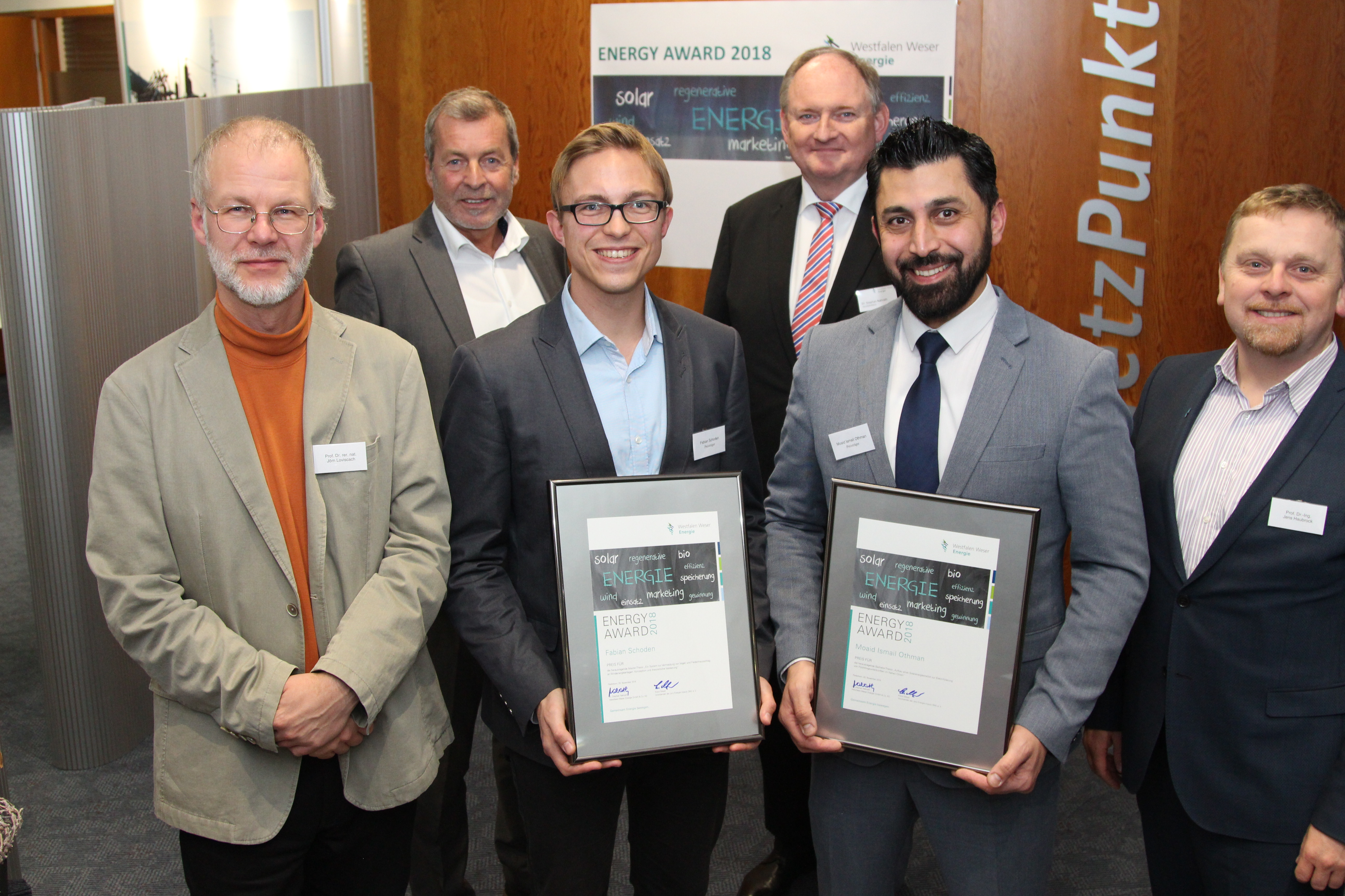 Die Energiebranche sieht sich durch die Umsetzung der Energiewende vor enorme Herausforderungen gestellt. Eine besondere Verantwortung kommt hierbei auf die Fachkräfte von morgen zu. Westfalen Weser Energie fördert deshalb junge Akademiker, die besondere Leistungen in ihren Abschluss- oder Projektarbeiten rund um das Thema Energieeffizienz/erneuerbare Energie gezeigt haben. Sechs hervorragende Einzelarbeiten und eine Projektgruppe wurden im November in Paderborn vom kommunalen Energiedienstleister mit dem Energy Award 2018 ausgezeichnet. Insgesamt wurden mehr als 10.000 Euro an Preisgeldern vergeben. Bereits zum 18. Mal zeichnet Westfalen Weser Energie damit den wissenschaftlichen Nachwuchs in Ostwestfalen-Lippe und dem Weserbergland aus. Zwei Preisträger kommen von der Fachhochschule Bielefeld.