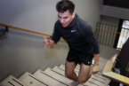 60 Sportive beim „3. IuM-Treppenlauf“ im FH-Hauptgebäude auf dem Campus Bielefeld.