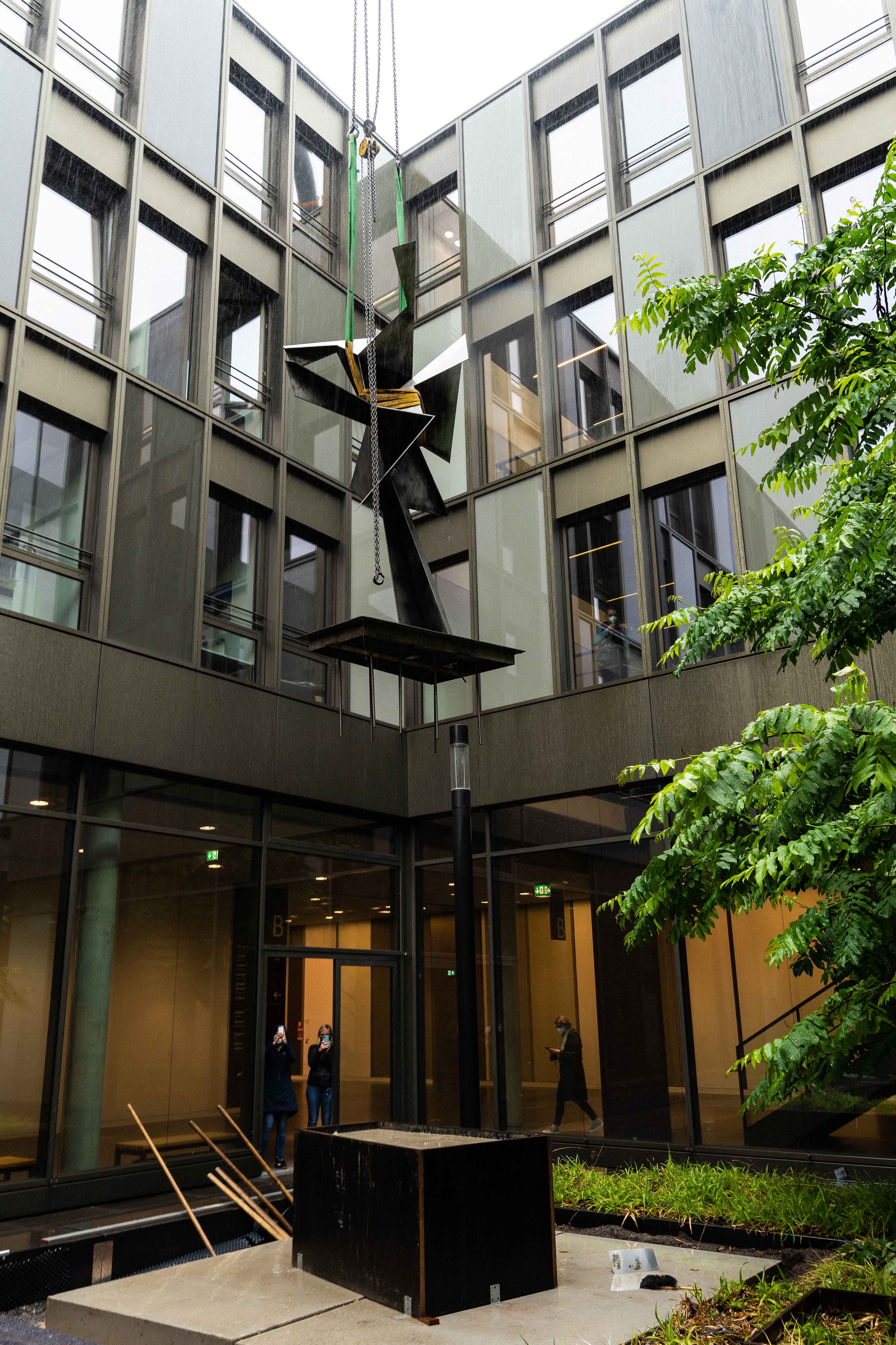 Die Skulptur von Hans Uhlmann wurde am 1. Juli 2021 an ihren neuen Platz gebracht.