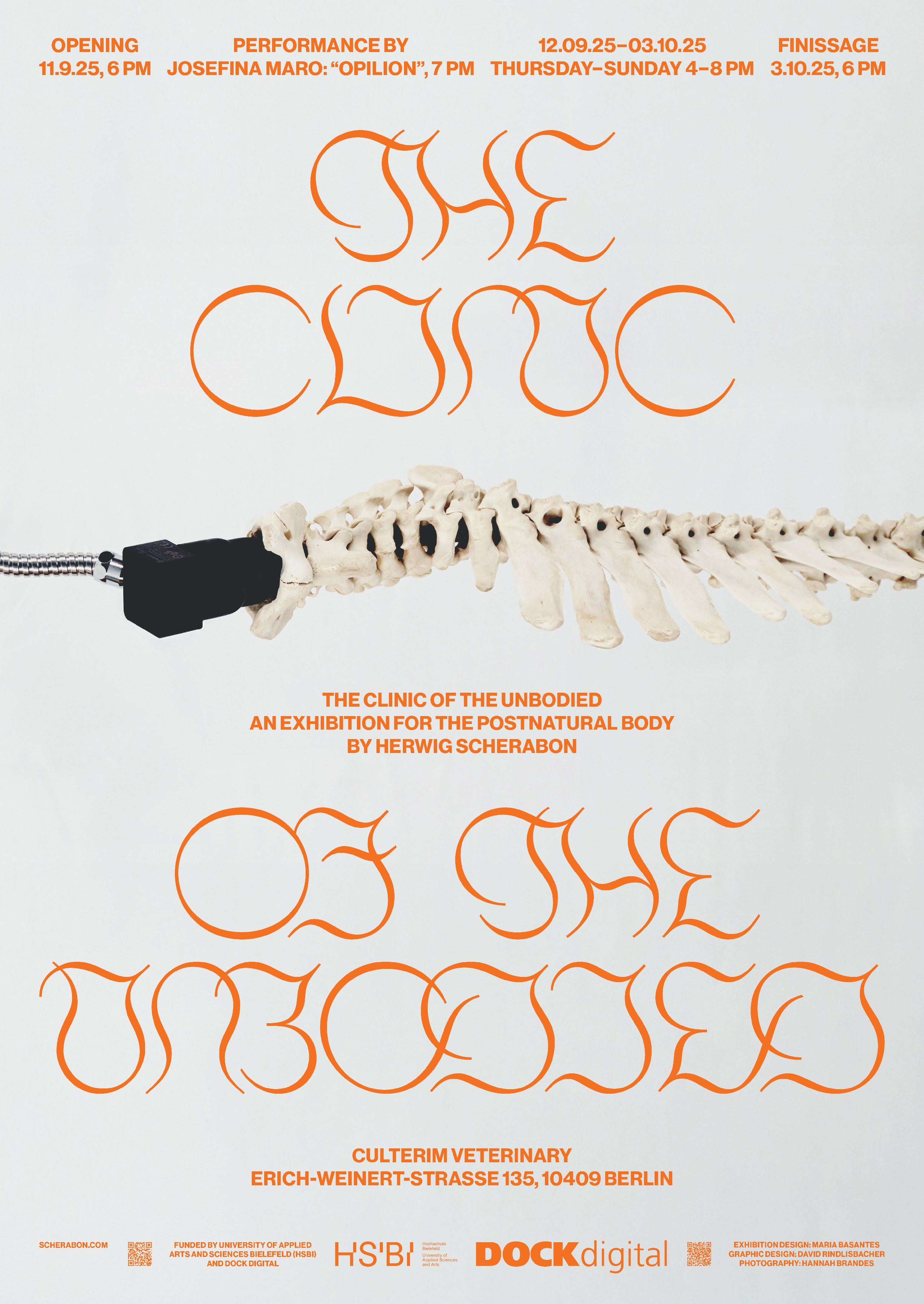 Die Ausstellung „The Clinic of the Unbodied“ von Herwig Scherabon wurde gefördert vom HSBI-internen Fond für Künstlerische Forschung. Unter demselben Titel ist auch ein Buch erschienen.