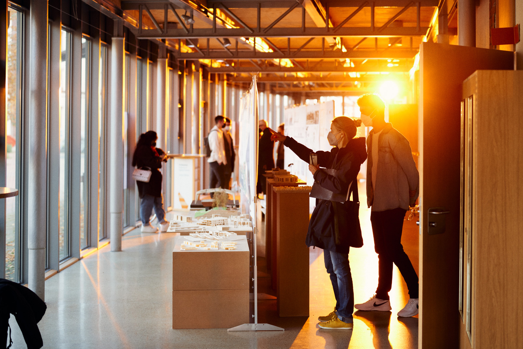 26 Studierende des Bachelorstudiengangs Architektur und des Masterstudiengangs Integrales Bauen zeigen nun insgesamt 17 Arbeiten. „Die Auswahl aus den Studienarbeiten fiel sehr schwer, sie ist fast schon zufällig“, bekennt Andreas Kopp und spricht damit für alle Lehrenden. Wichtig war ihnen, dass Arbeiten aus allen Semestern vertreten sind, „damit man auch die Entwicklung der Kenntnisse und Fähigkeiten während des Studiums beobachten kann“, erklärt Bettina Mons.