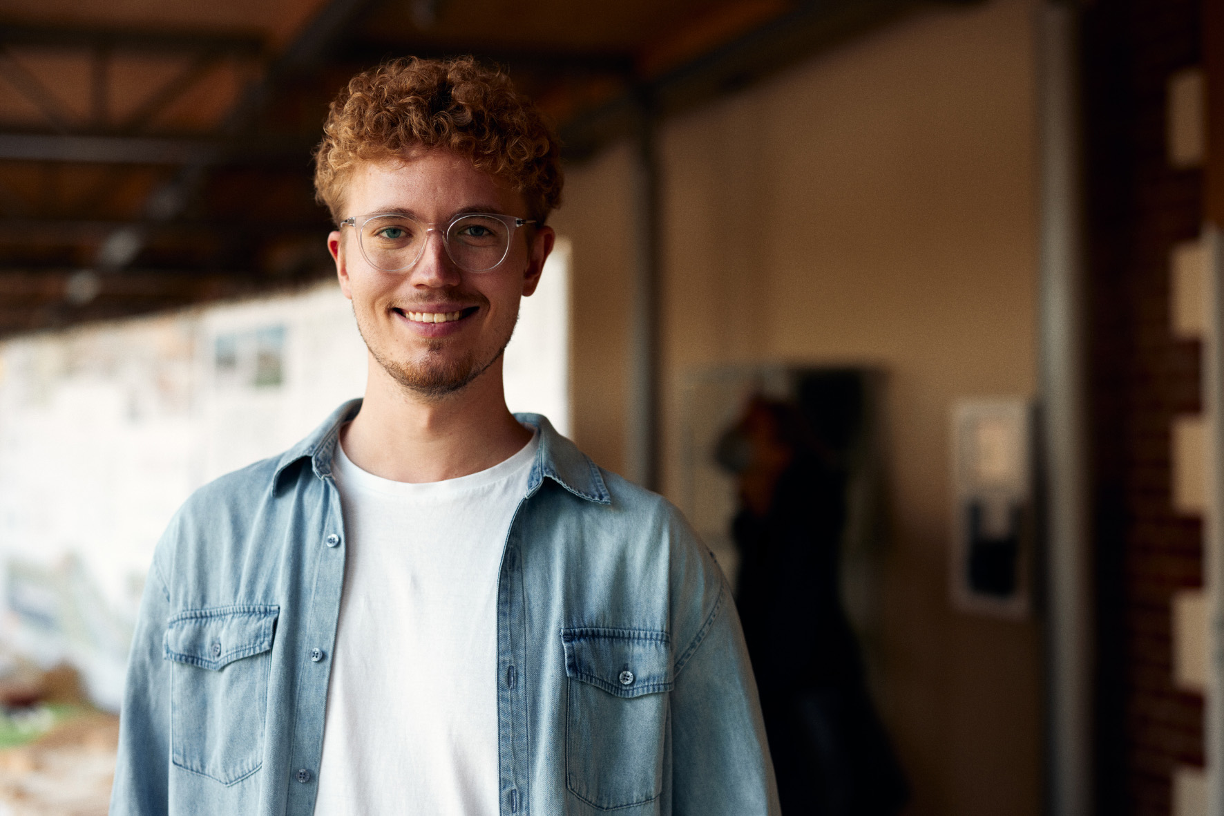 Ein ausgefeiltes Modell zeigt Julian Blome, es ist schließlich Teil seiner Bachelorarbeit. Blome hat ein Empfangsgebäude für Beelitz Heilstätten entworfen und den Innenraum gestaltet. Das beliebte Ausflugsziel in der Nähe von Potsdam ist eine ehemalige Lungenheilstätte, das Empfangsgebäude soll den Besucherinnen und Besuchern als Eintritt und mit einem Ausstellungs- und Veranstaltungsbereich zur Information über die Geschichte des Areals dienen. „Mir gefiel der Lost-Place-Aspekt sofort, kein Projekt mitten in Berlin, sondern irgendwo in Brandenburg, bei dem sich Naturerlebnis und Geschichte des Ortes verbinden“, erzählt Blome. Auf einer Exkursion erkundete er das Areal, setzte sich intensiv mit dem Ort und seiner Geschichte auseinander und passte seinen Entwurf behutsam, aber deutlich akzentuiert in das bestehende Gebäudeensemble ein. Mit der Architektur hat Blome sein Thema gefunden. „Na klar, ich schließe das Masterstudium gleich an.“