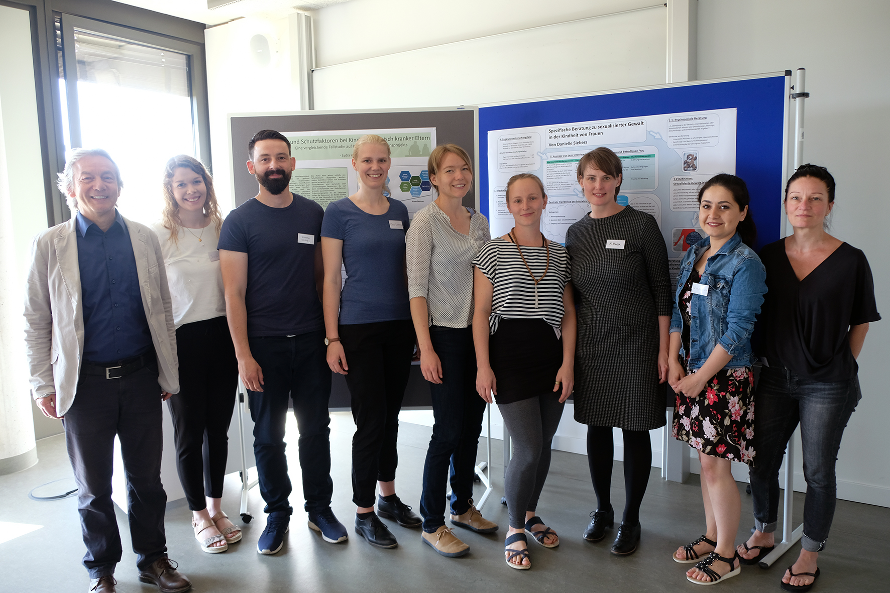 Waldemar Sperling erforschte die Motive eigenethischer Sportvereinsgründungen auf Basis von Interviews von Menschen mit Migrationshintergrund. Katharina Wilkes Projekt mit dem Titel „Der Dialog als Methode zur Stärkung der Teamresilienz" war eine Praxisforschung in einem Wohngruppenteam der stationären Erziehungshilfe. Sie untersuchte, ob der Dialog das Erleben von Dienstbesprechungen positiv beeinflusst.