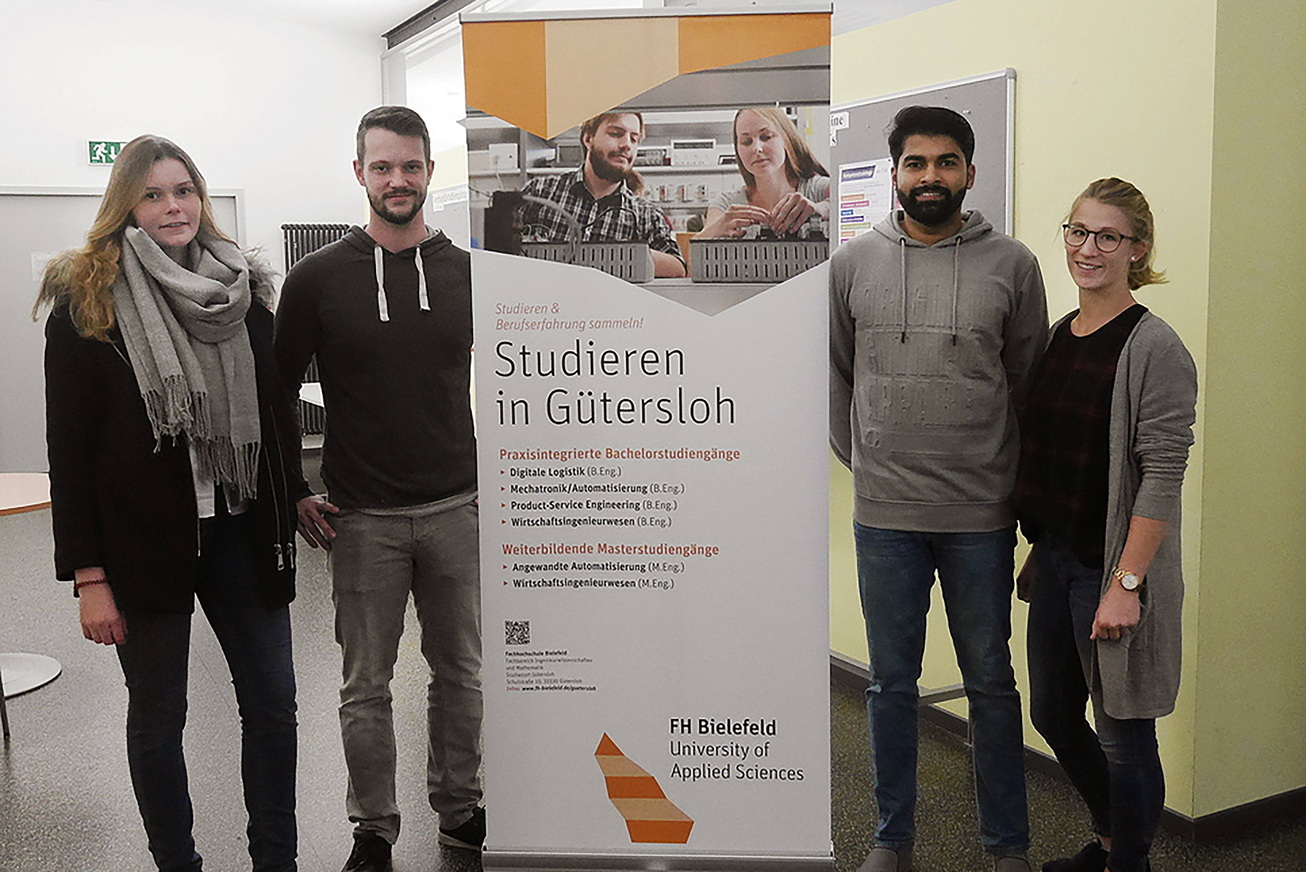 Darüber hinaus erhalten die Teilnehmerinnen und Teilnehmer der Vorkurse die Möglichkeit, von den Erfahrungen der Studierenden am Campus Gütersloh zu profitieren. „Die nur wenig älteren Studierenden berichten den Schülern innerhalb der Vorkurse von ihren Erfahrungen in einem MINT-Studium. Neben einer allgemeinen Vorstellung ihres persönlichen Werdegangs geben sie auch wertvolle Tipps für einzelne Vorlesungen, beispielweise in Mathe“, berichtet Prott-Warner. Die so genannten Paten studieren praxisintegriert am Campus Gütersloh, das bedeutet, sie sind zum einem bei einem Unternehmen angestellt und sammeln dort pro Semester elf Wochen Praxiserfahrung. Anschließend absolvieren sie eine 12-wöchige Theoriephase am Campus Gütersloh. Die Paten laden die Teilnehmerinnen und Teilnehmer der Mathe-Vorkurse exklusiv zu Besuchen in ihr Unternehmen ein, bei denen die Schülerinnen und Schüler mögliche Kooperationspartner für ihr Studium und ein Berufsfeld kennenlernen können. In diesem Jahr wurde bereits das Unternehmen Beckhoff besucht. Für diese Führung hatten sich rund 50 Schülerinnen und Schüler angemeldet. Bis Ende des Jahres sind noch Besuche bei der Gesellschaft für Regelungstechnik und Energieeinsparung (GFR), bei Miele und bei Venjakob geplant. „Das Anfang des Jahres gestartete Konzept hat sich bereits bewährt, wir werden es fortsetzen“, so IuM-Dekan Prof. Dr. Lothar Budde.
