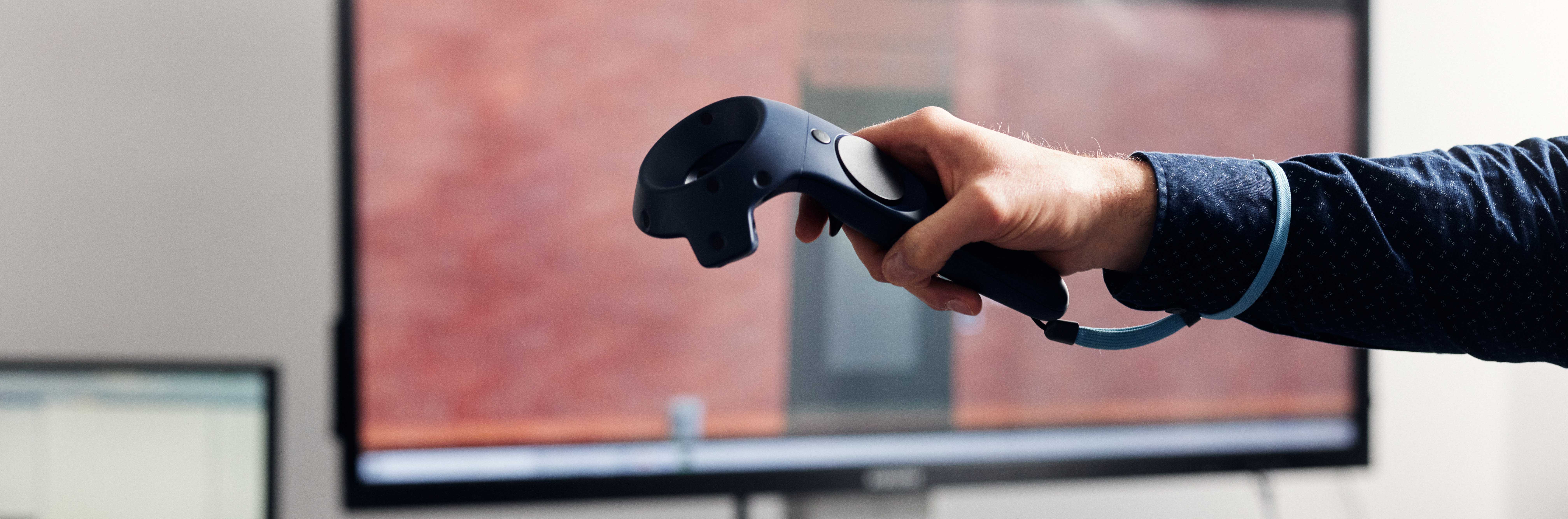 Mithilfe eines Controllers können die Studierenden den virtuellen Aufzug testen.